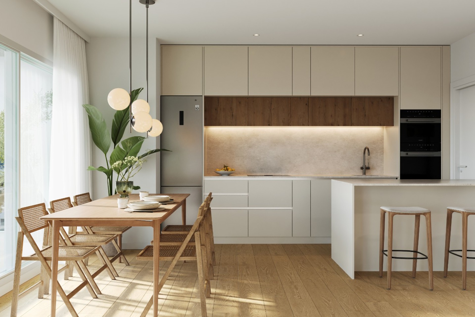 Interiéry byly navrženy tak, aby poskytovaly světlé, funkční a příjemné prostory, s použitím vysoce kvalitních materiálů a pečlivě vybraných povrchových úprav. Plně vybavené kuchyně, designové koupelny a obytné prostory vytvořené pro středomořské klima a život venku.