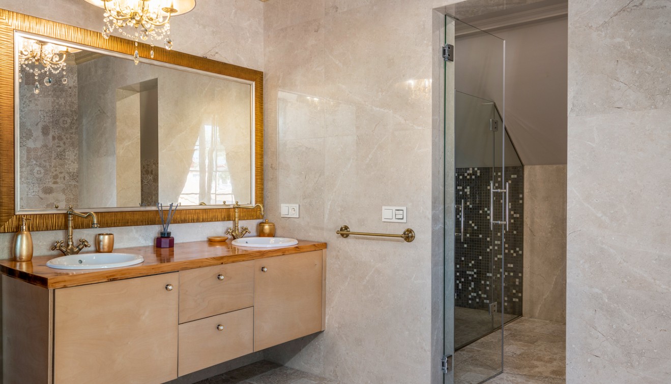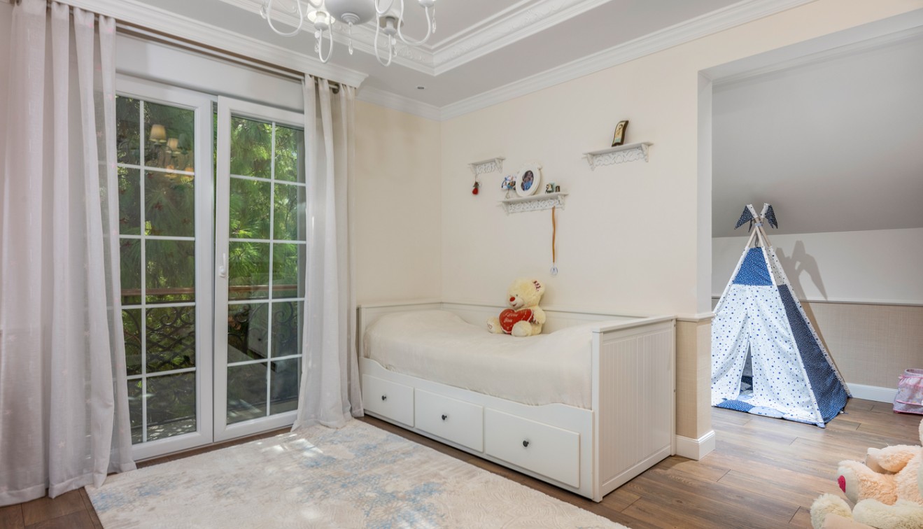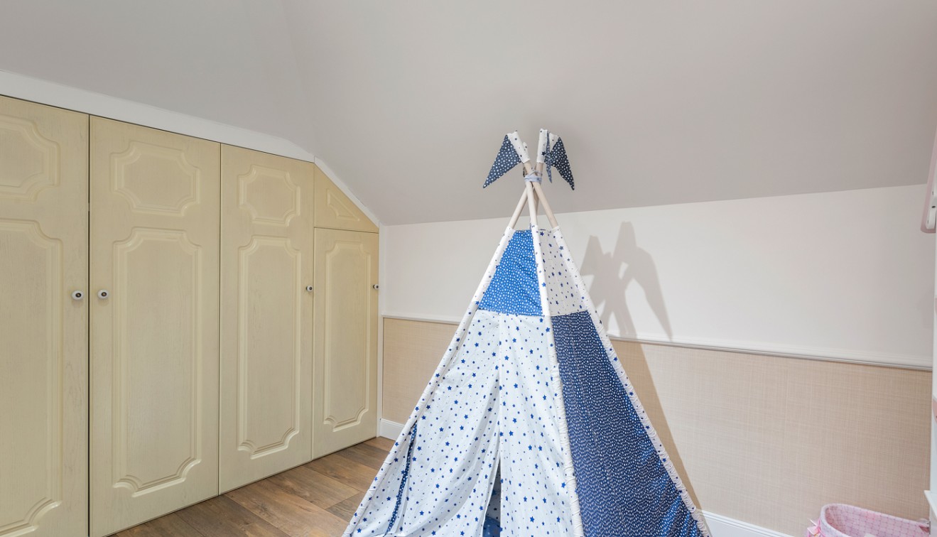 V patře naleznete velkou šatnu, 3 prostorné ložnice a 2 koupelny, z nichž jedna je en suite (v přímé návaznosti na ložnici).