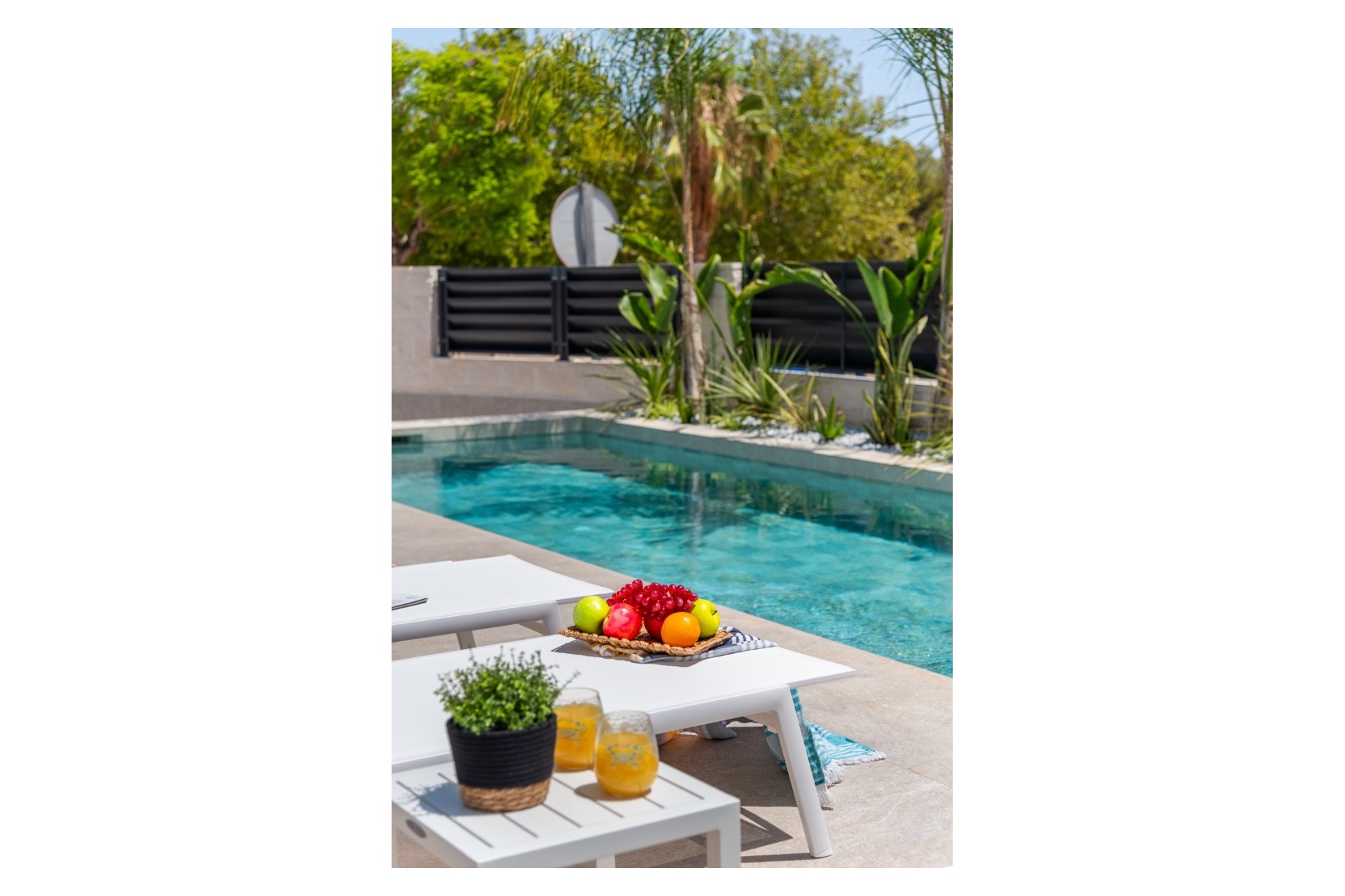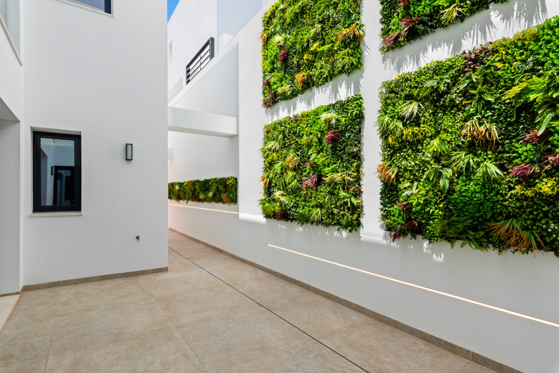 Mezi další vybavení nemovitosti patří garáž, solární panely, sklad, dlážděná zahrada s palmami, klimatizace, technická místnost a výhled do zeleně. Vila je plně zařízená a disponuje i prostornou prádelnou.