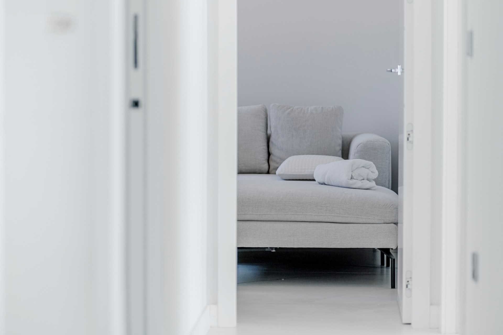 Prostorný obývací prostor je zalitý přirozeným světlem a zahrnuje otevřenou kuchyni vybavenou špičkovými chytrými spotřebiči značky Samsung a exkluzivními povrchy Porcelanosa. Díky plynulému designu a prémiovým materiálům je tento prostor ideální jak pro každodenní život, tak i pro společenská setkání.