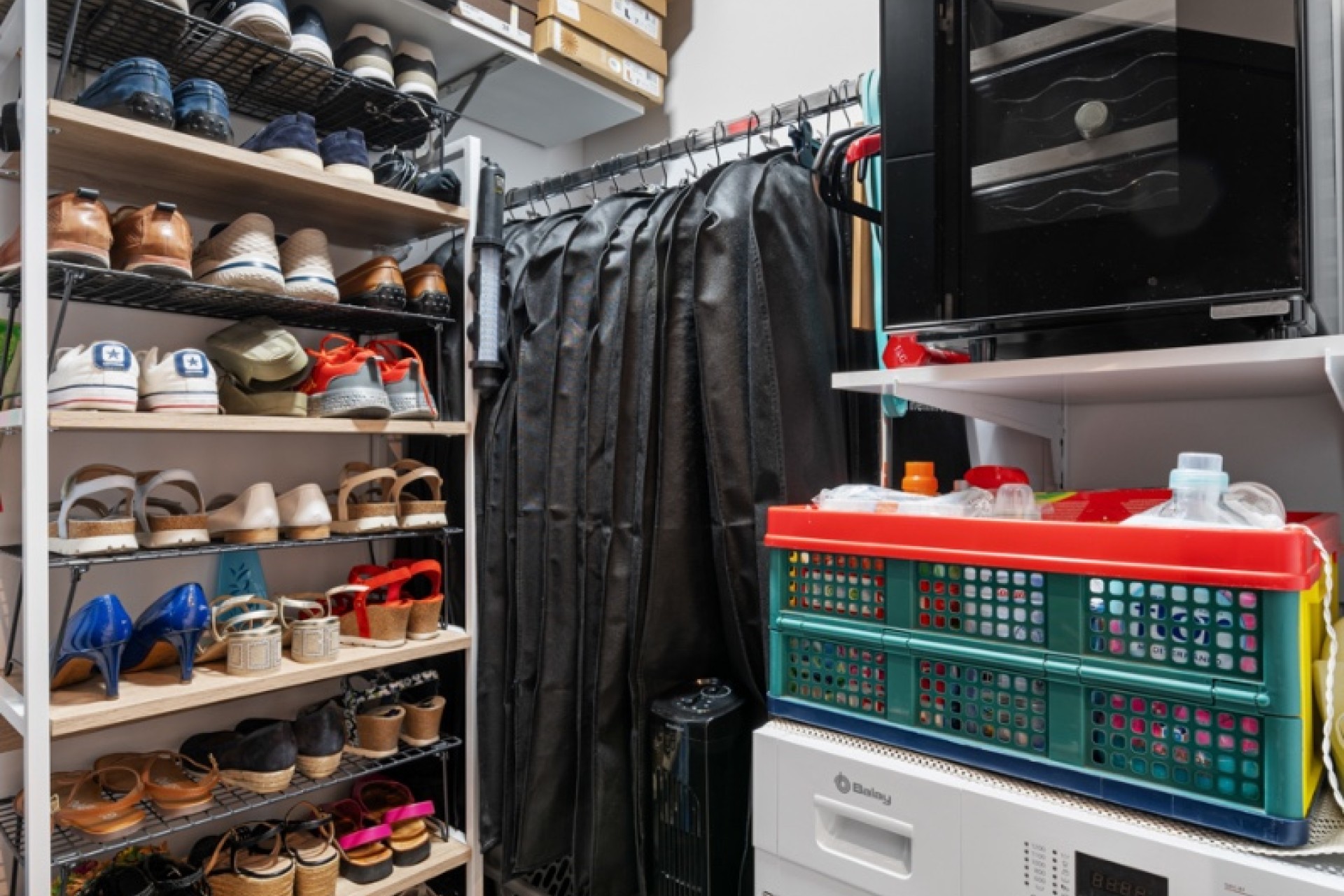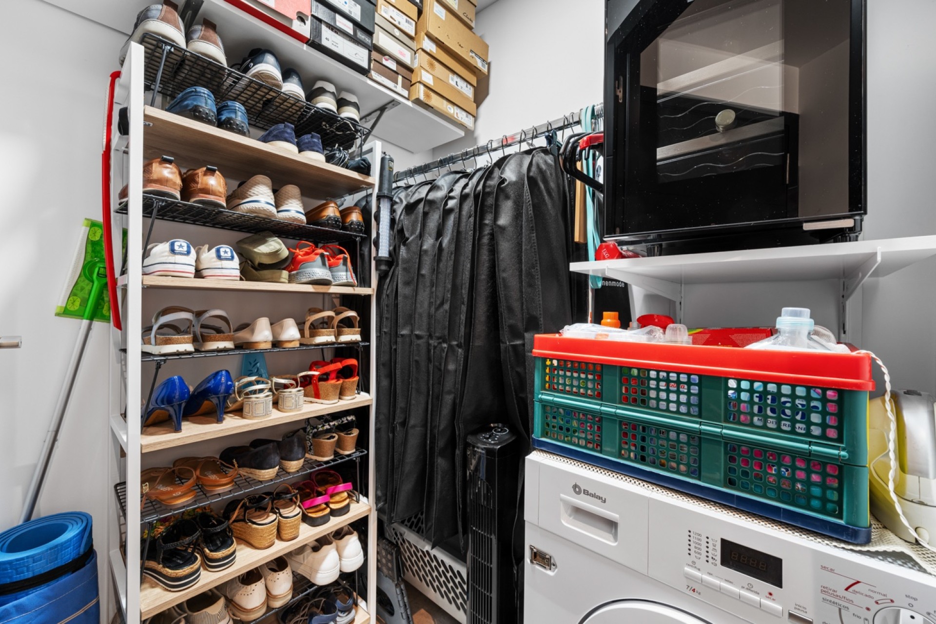 Dispozice ve tvaru L zajišťuje funkční využití prostoru. Byt má také vstupní halu, samostatnou prádelnu, komoru a klimatizaci.