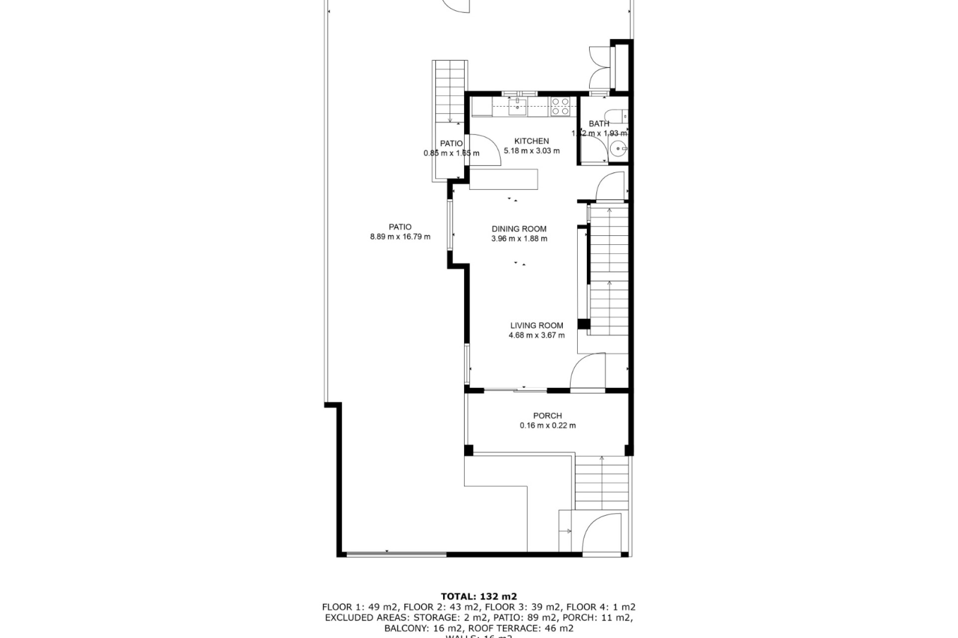 Nemovitost se nachází v rezidenčním komplexu Riva v Doña Pepa (Ciudad Quesada). Jedná se o dvojdomek rozdělený do čtyř podlaží. Suterén zahrnuje ložnici, kompletní koupelnu, rekreační místnost a úložný prostor. Přízemí má obývací pokoj s jídelnou s přístupem na verandu a terasu, samostatnou kuchyň s přístupem na patio a koupelnu. V prvním patře jsou dvě dvoulůžkové ložnice s vestavěnými skříněmi, koupelna, šatna v hlavní ložnici a balkony. Poslední patro nabízí soukromé solárium s prádelnou a výhledem na laguny v Torrevieji.