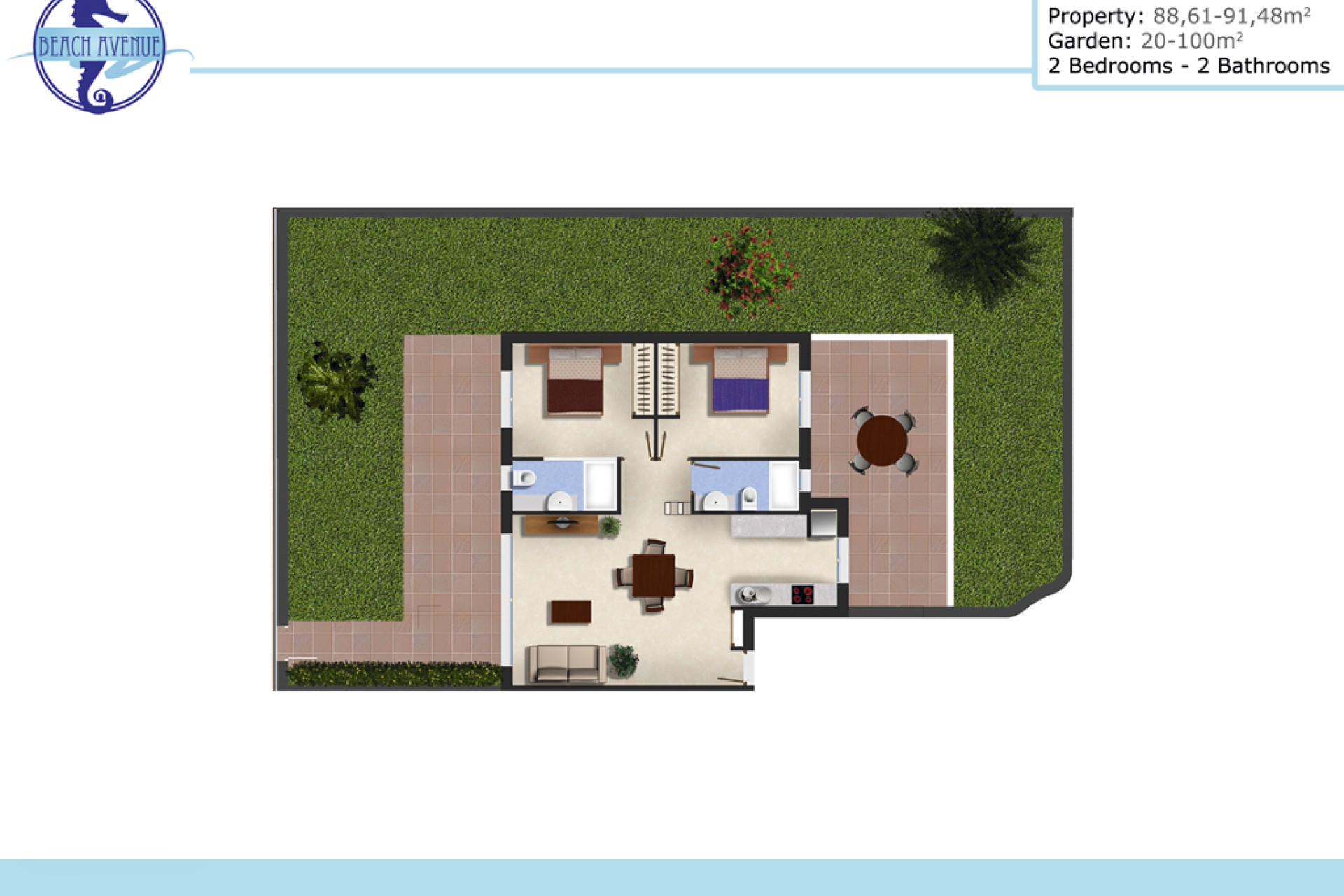Los apartamentos tienen una superficie habitable de aprox. 90m2 y constan de dos habitaciones dobles y dos baños. También tienen una hermosa sala de estar y cocina de planta abierta. Ambos dormitorios tienen armarios empotrados y todos los apartamentos tienen aire acondicionado preinstalado.