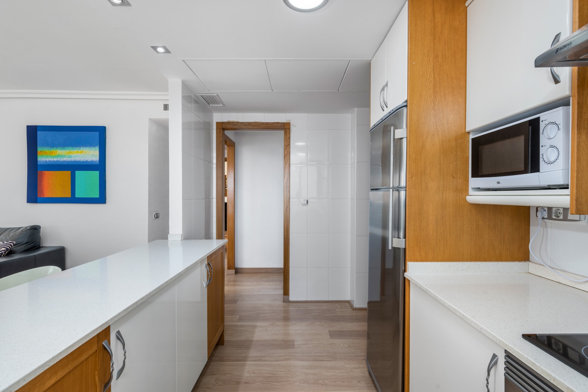 PRICED TO SELL!! Es un placer poder presentar esta oportunidad única. Un piso maravilloso con vistas espectaculares. Se encuentra junto al mar con vistas despejadas desde toda la vivienda. El apartamento está ubicado en la octava planta de una urbanización cerrada. Hay ascensor en el edificio. Desde la puerta principal se accede a un salón muy luminoso y agradable con cocina americana. Junto a la cocina hay una pequeña despensa. En el salón hay espacio para zona de comedor y zona de estar, y tiene acceso directo a una gran terraza cubierta. Además, el apartamento tiene 2 dormitorios grandes, de los cuales el dormitorio principal tiene baño en suite. Aparte tiene un baño familiar. El apartamento está equipado con aire acondicionado por conducto y todos los suelos son de madera (tarima). Se vende amueblado, listo para entrar y vivir.