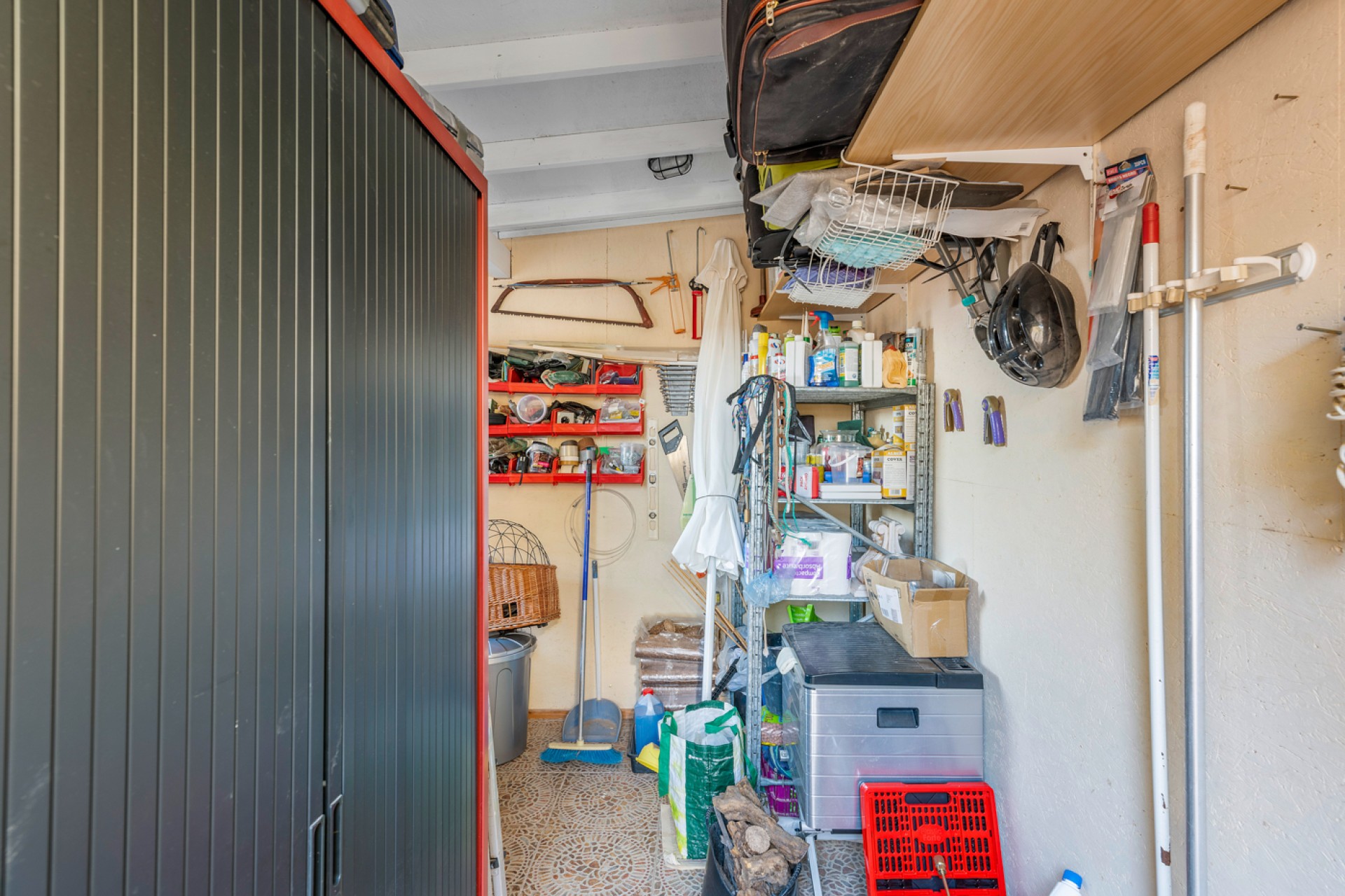 En el lado izquierdo de la propiedad, encontrará un área organizada con un pequeño cobertizo que puede ser ideal para herramientas al aire libre y espacio de almacenamiento, y espacio de almacenamiento para madera. Además, hay un sótano que puede ser excelente para más almacenamiento adicional.