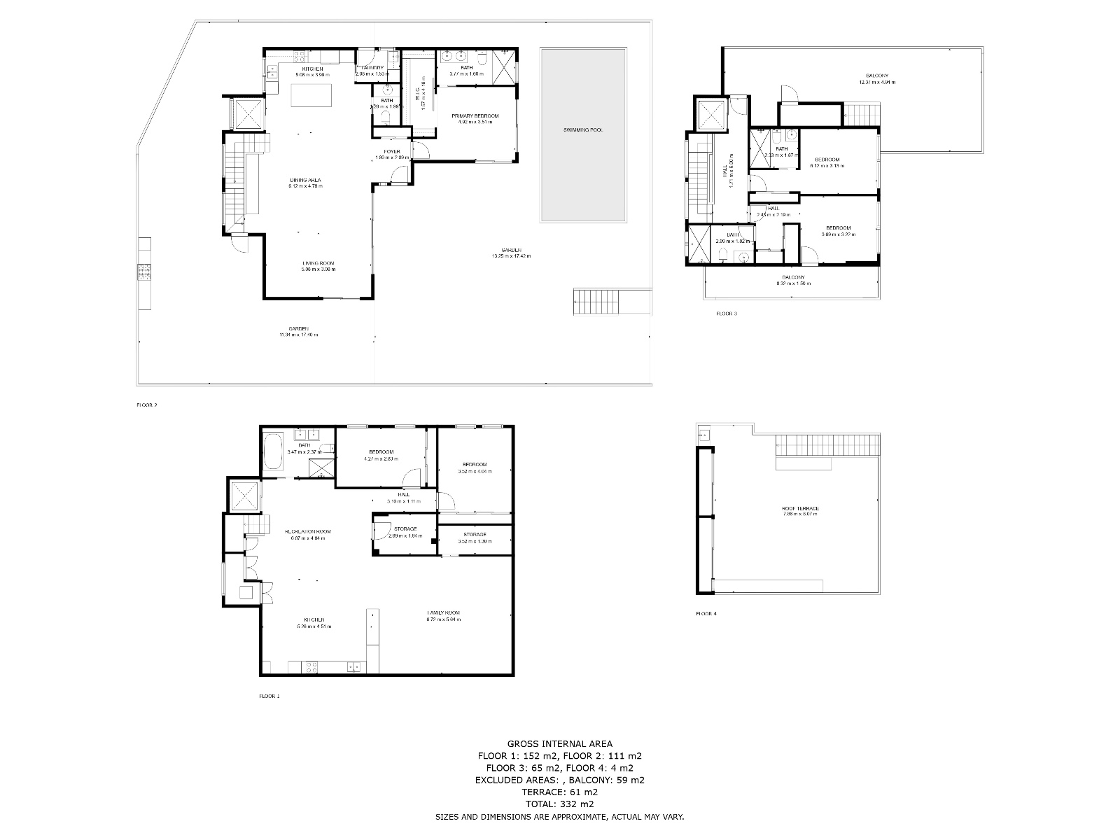 Esta propiedad de lujo de reciente construcción cuenta con un total de 5 habitaciones y 4 baños, distribuidos en dos plantas y sótano, con un práctico ascensor que comunica con todas las plantas de la casa y una preciosa escalera de cristal con luz interior. En la planta sótano encontramos un salón de juegos (con billar y futbolín), un salón para celebraciones con una cocina completa, 2 habitaciones, 2 cuartos de almacenaje y un baño completo. En la planta principal encontramos el salón comedor con cocina de concepto abierto e isla central, la habitación principal con baño en suite, así como el cuarto destinado a lavandería y un aseo. En la primera planta se ubican 2 habitaciones amplias, 2 cuartos de baño y los accesos a los balcones. En la última planta encontramos un increíble solarium de unos 70m2 con impresionantes vistas panorámicas.