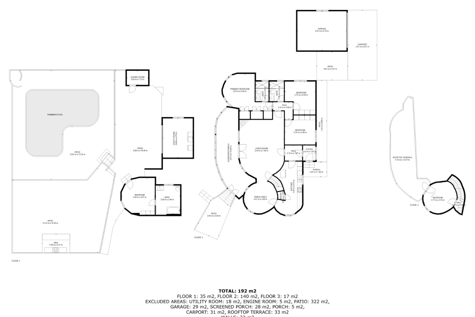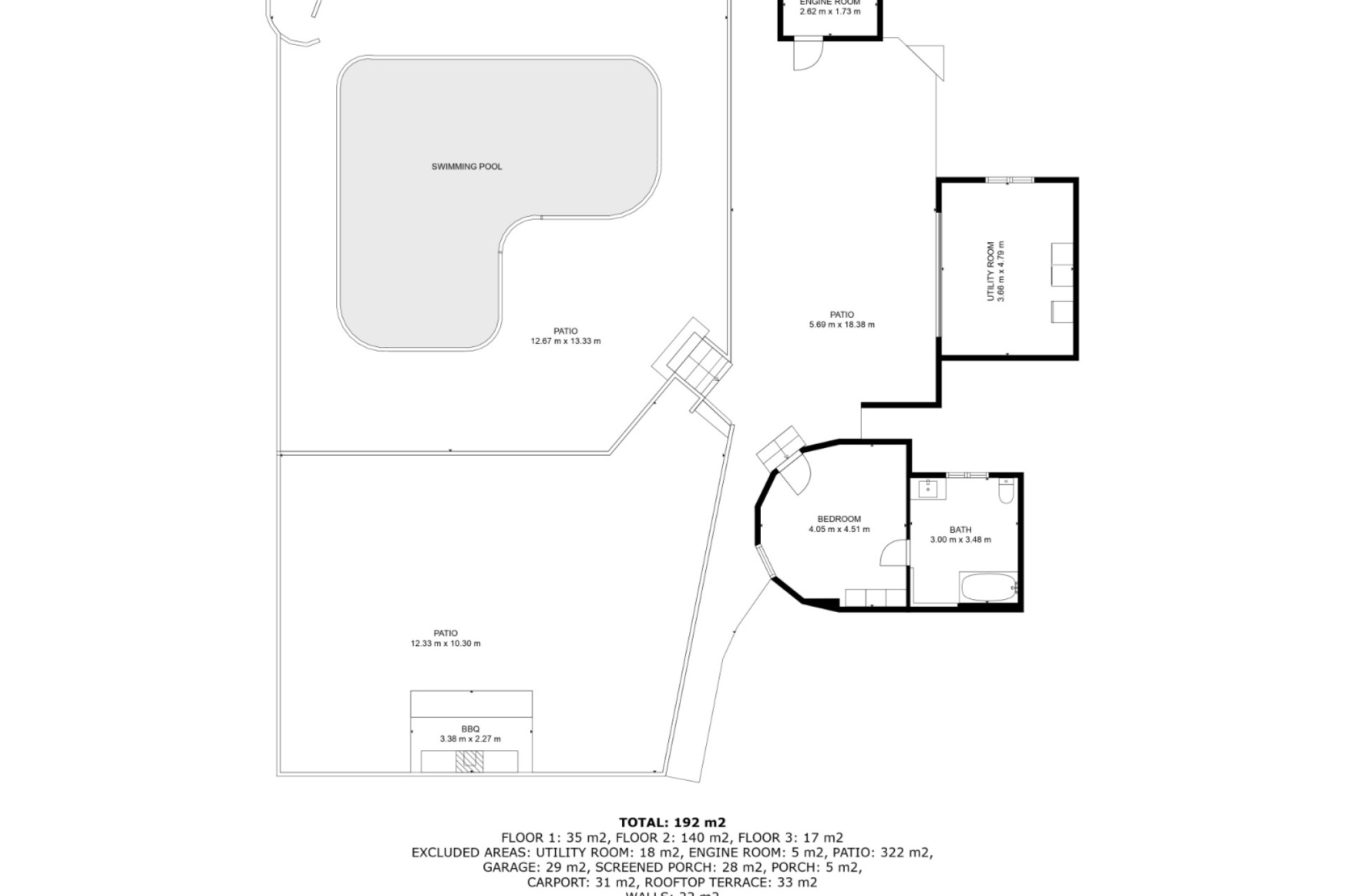 La piscina privada tiene 35,87 m² y está rodeada de instalaciones de ocio bien diseñadas.