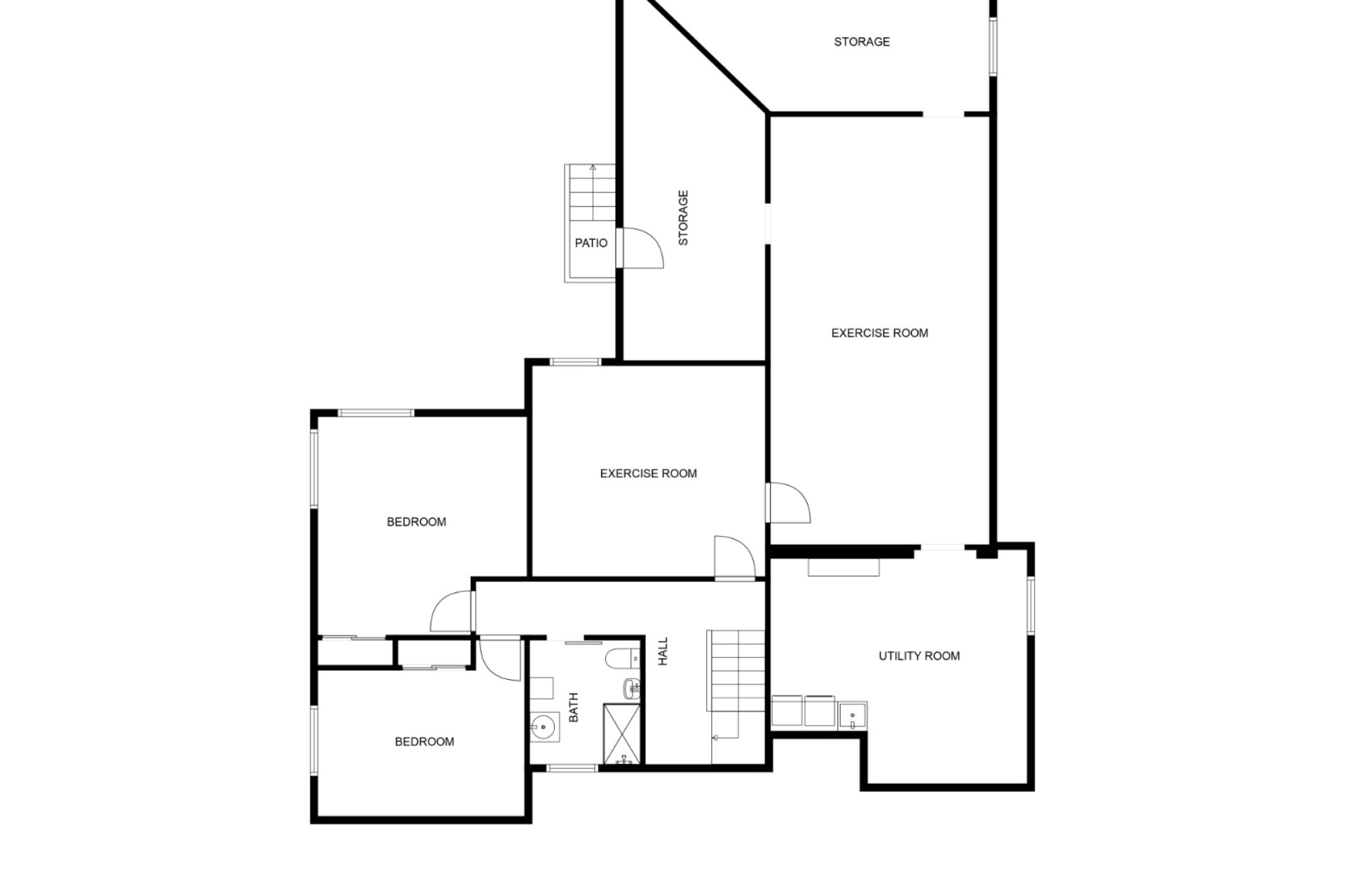La planta baja alberga dos dormitorios adicionales, un baño completo, un gimnasio, un cuarto de lavandería y una sala técnica, además de espacios de almacenamiento.