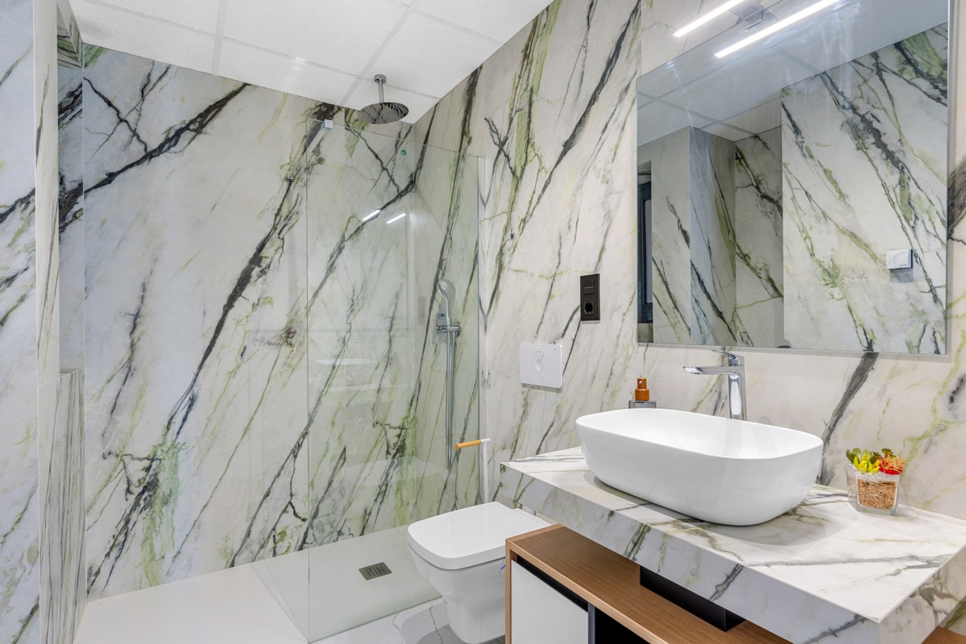 À l’étage supérieur, vous trouverez un solarium privé avec piscine, parfait pour profiter de moments de détente en toute intimité. Une place de parking fermée et spacieuse est également incluse dans la résidence.