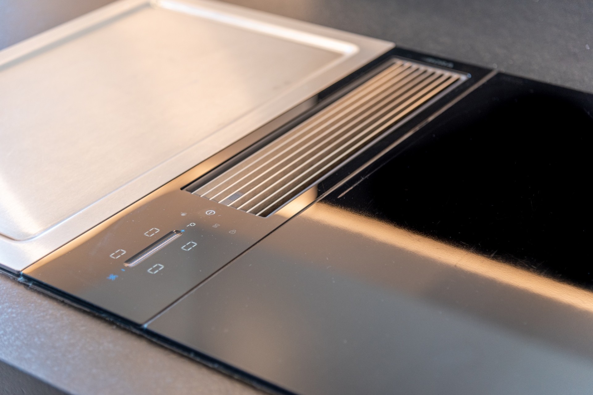 La maison comprend un salon-salle à manger de 45 m² avec cheminée intégrée, relié à une grande cuisine design de 40 m² avec espace repassage et électroménager. La cuisine dispose d'un îlot central de 4 mètres avec bar, d'une cave à vin de 80 bouteilles, de deux réfrigérateurs avec congélateur dissimulés et de plaques de cuisson à induction Bora avec teppanyaki et hotte aspirante. Les rangements sont nombreux et tous les placards et tiroirs sont équipés d'un éclairage intérieur LED.