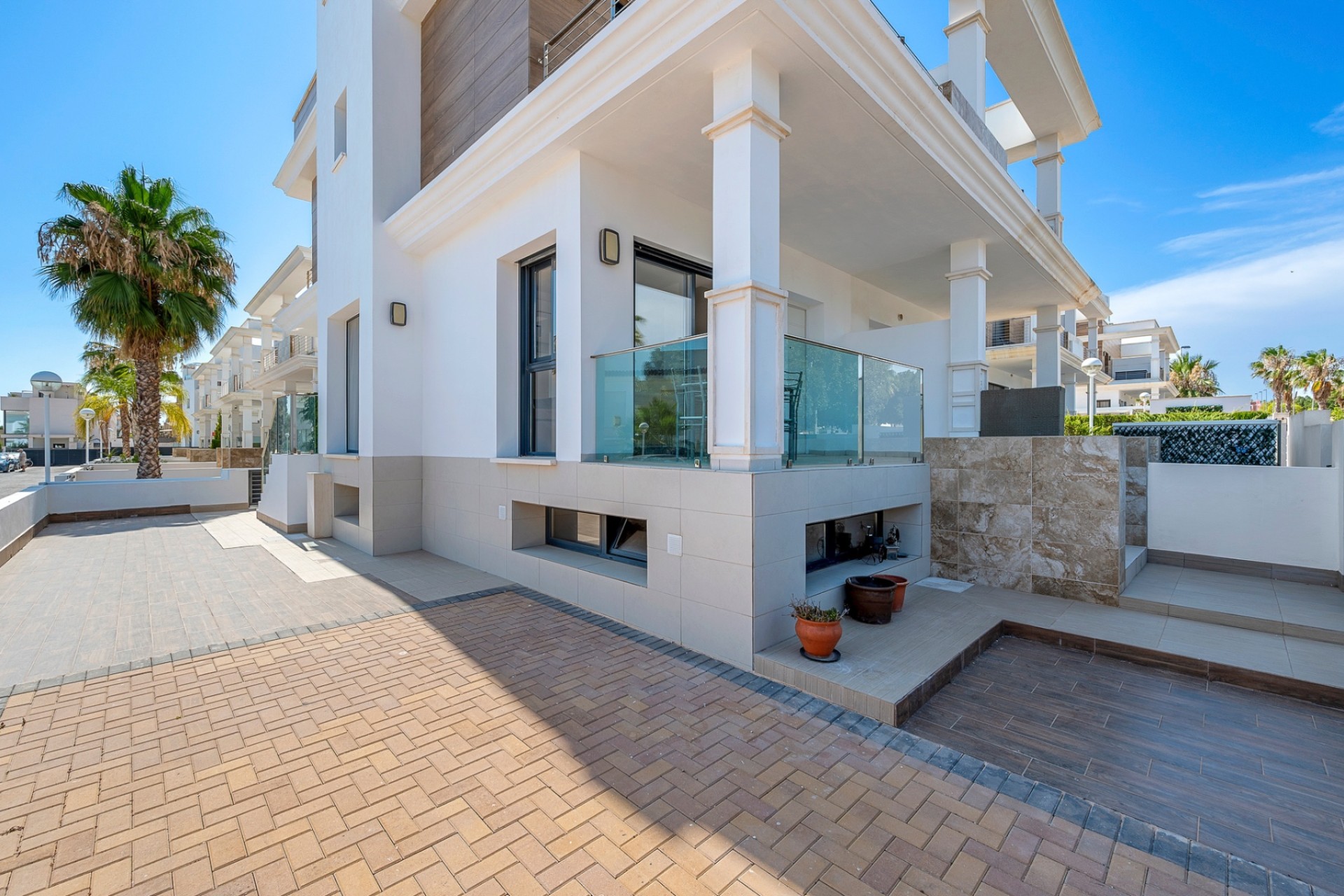 Cette propriété est située dans le complexe résidentiel Riva à Doña Pepa (Ciudad Quesada). C’est une villa mitoyenne répartie sur quatre niveaux. Le sous-sol comprend une chambre, une salle de bain complète, une salle de loisirs et un espace de rangement. Le rez-de-chaussée dispose d’un salon-salle à manger avec accès au porche et à la terrasse, d’une cuisine indépendante donnant sur le patio et d’une salle de bain. Au premier étage se trouvent deux chambres doubles avec armoires encastrées, une salle de bain, un dressing dans la suite parentale et des balcons. Le dernier étage offre un solarium privé avec buanderie et vue sur les lagunes de Torrevieja.