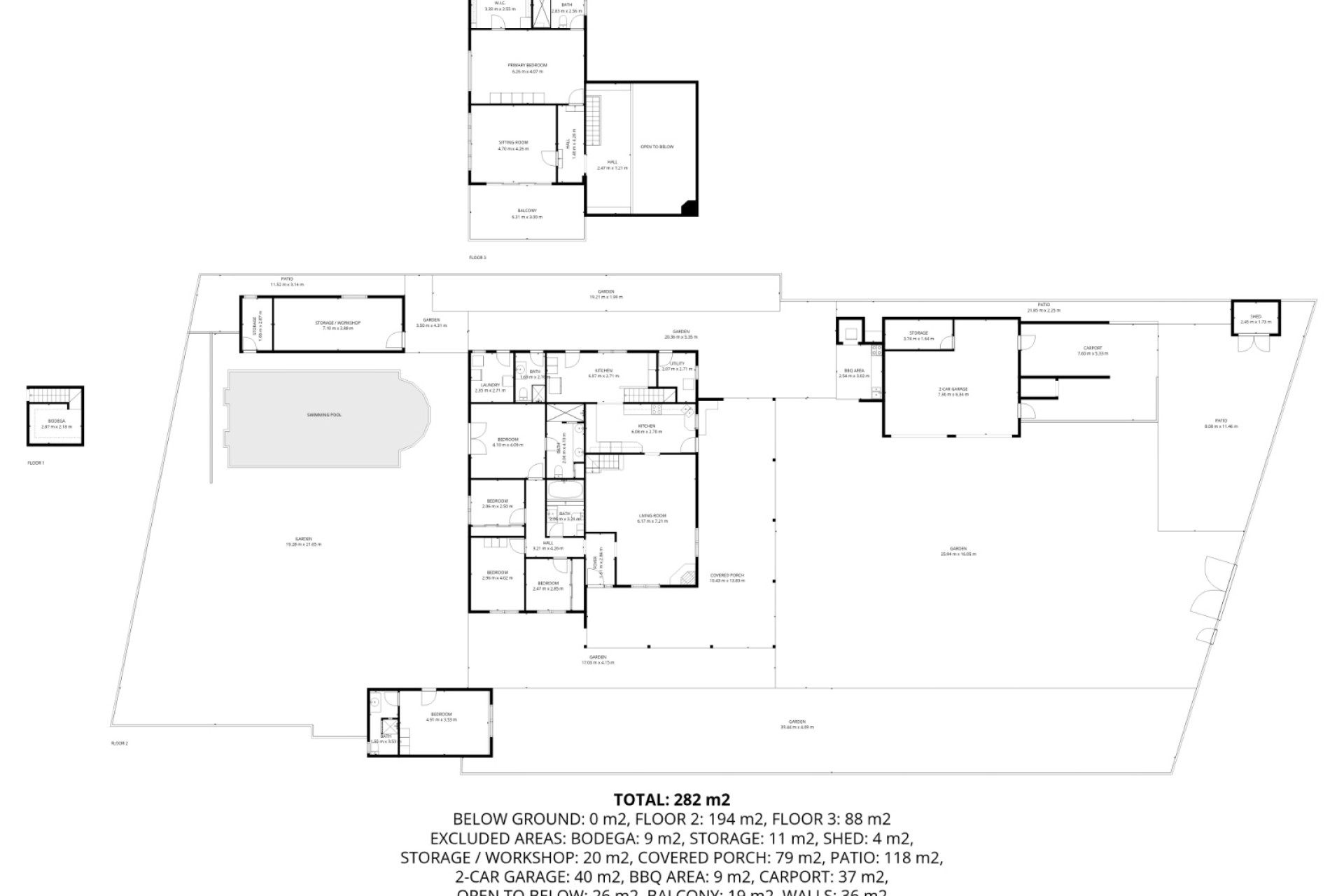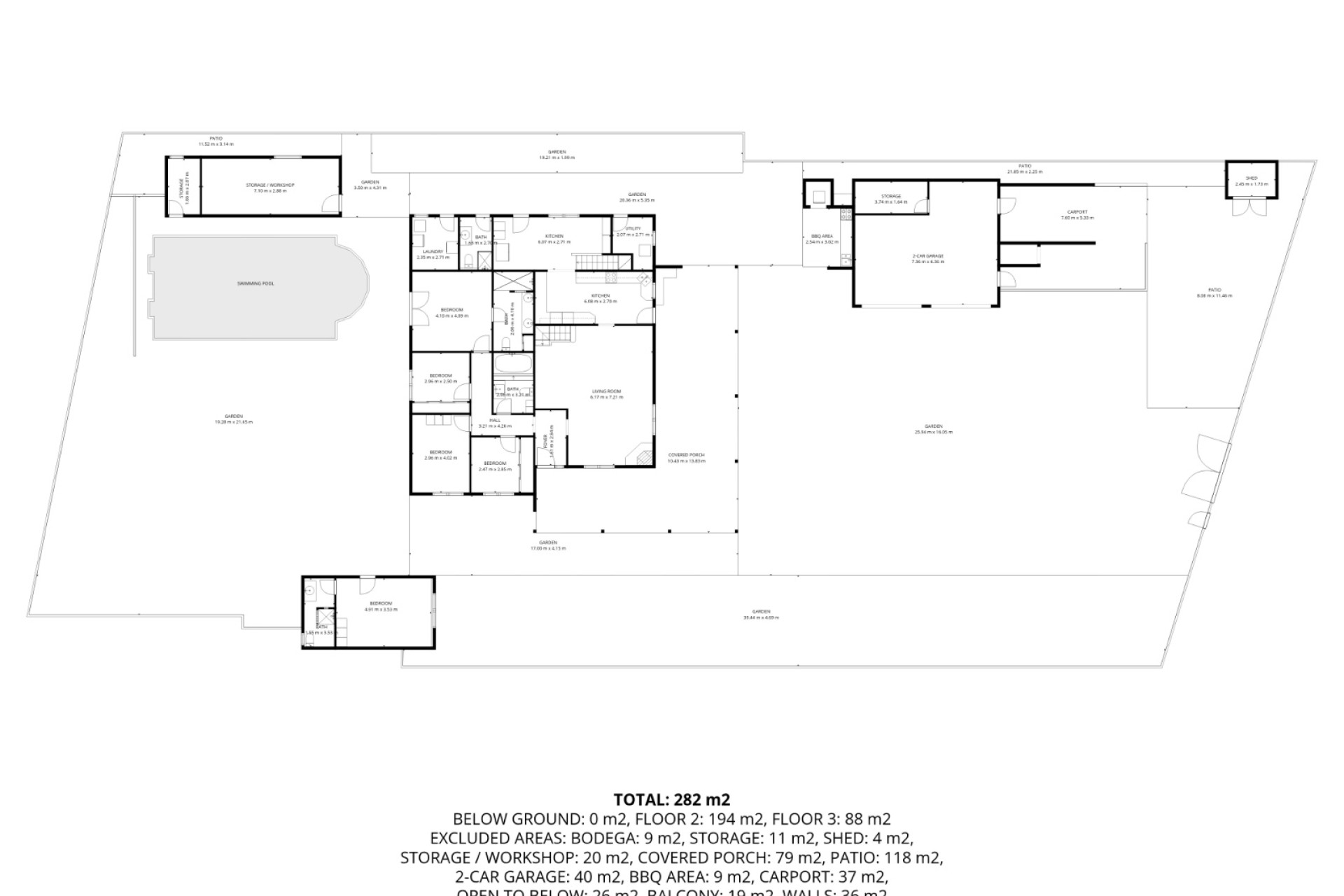Sur le côté, se trouve une maison d’amis avec chambre et salle de bain entièrement équipées — idéale pour accueillir vos invités. À l’arrière, la piscine privée et sa grande terrasse deviennent le cœur de la maison pendant les jours les plus ensoleillés.