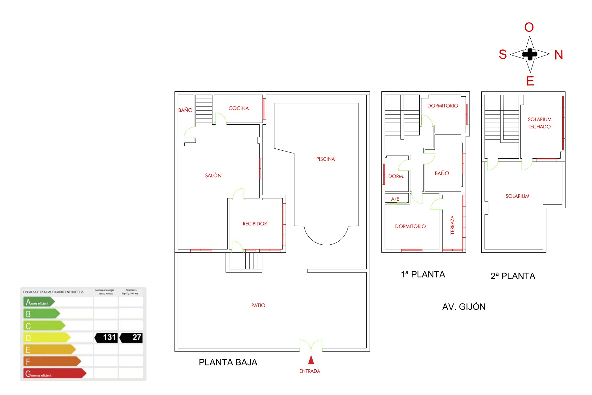 De eerste verdieping beschikt over drie slaapkamers, waarvan de hoofdslaapkamer met ingebouwde kast en toegang tot een glazen terras, evenals een tweede badkamer.