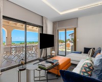Deze woning, onlangs gerenoveerd in 2021, biedt een panoramisch uitzicht op een van de mooiste stranden aan de Costa Blanca, Playa de la Roqueta in Guardamar del Segura. Het is een open strand, vlakbij de stranden Centro en Moncayo. De woning maakt deel uit van een wooncomplex (Residencial Benamor) en heeft een perfecte ligging waardoor u optimaal kunt profiteren van het mediterrane klimaat.
