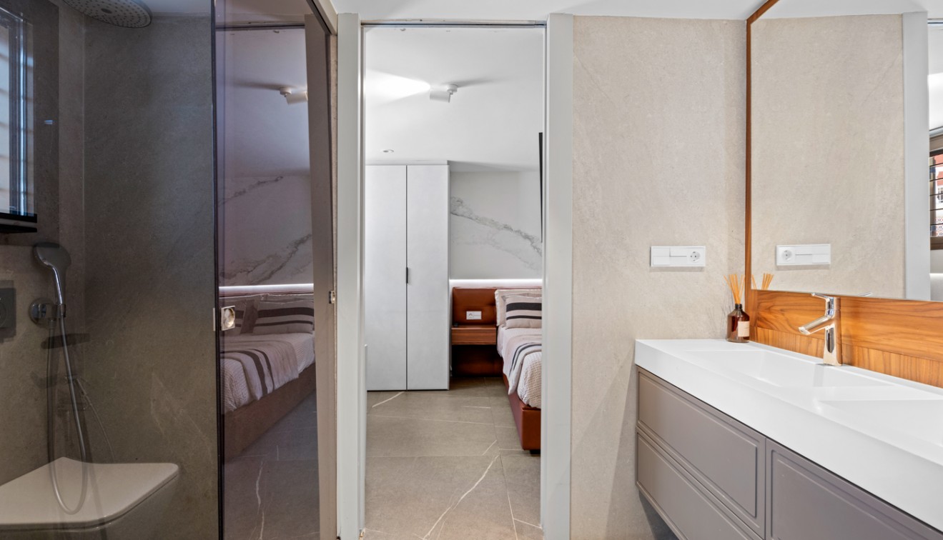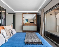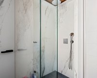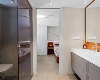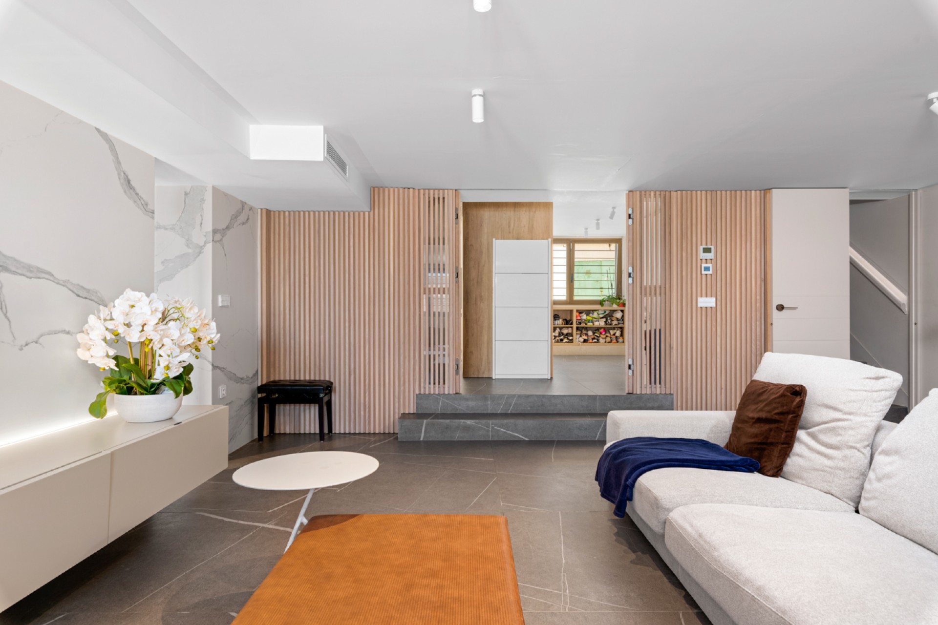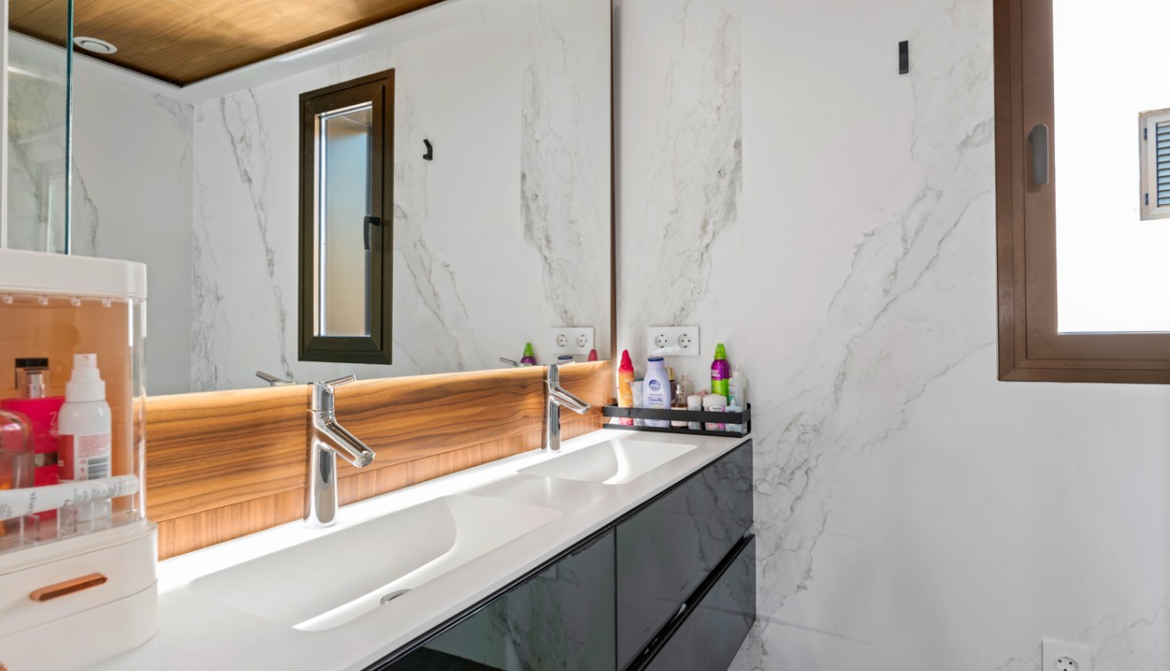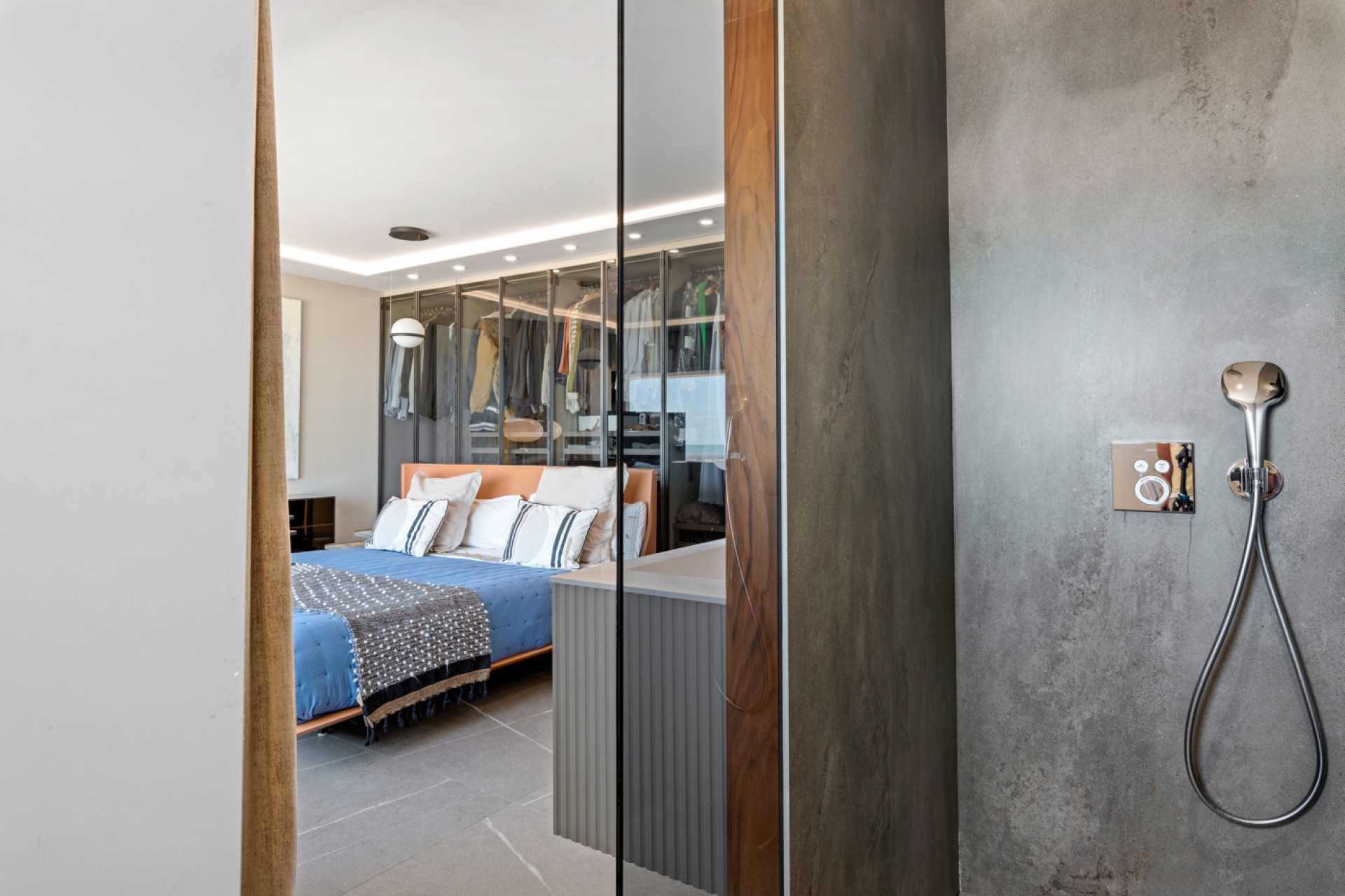 In de kelder van de woning vinden we een ruime woonkamer, een fitnessruimte, 3 slaapkamers, 2 badkamers en een wasruimte met veel bergruimte. Op de begane grond vinden we een eetkamer verdeeld over twee verdiepingen, met open uitzicht op zee. Daarnaast vinden we op deze verdieping een Amerikaanse keuken van Italiaans design, volledig afgewerkt en uitgerust met apparatuur van de beste merken. Op de eerste verdieping van het huis bevinden zich een woonkamer met badkamer en balkon, en daarnaast nog twee slaapkamers en één badkamer.