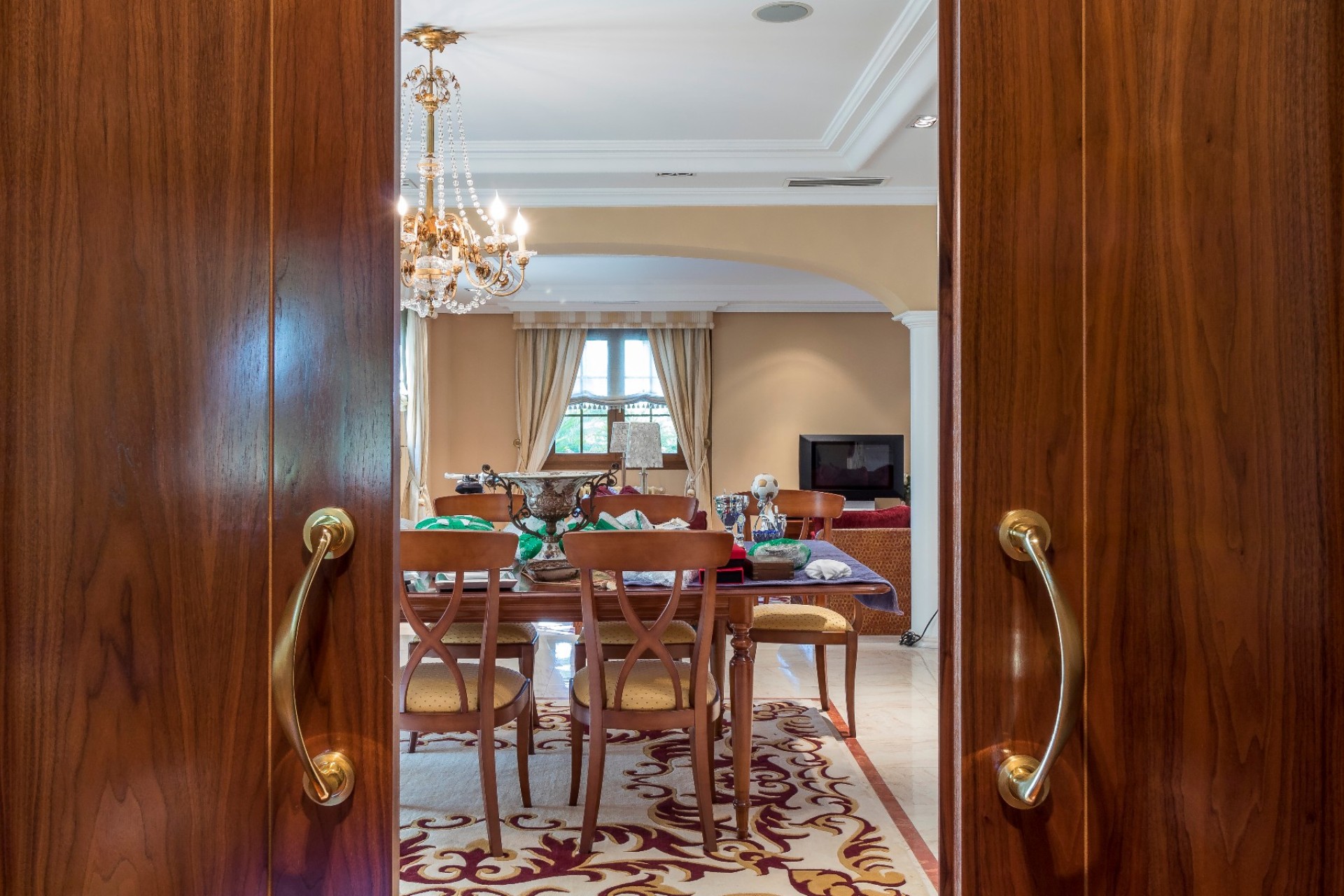 Første etasje er fordelt i stue, hall 1, bad 1, garderobe 1, soverom 1, korridor 2, soverom 2, bad 2, soverom 3, bad 3, soverom 4, bad 4, garderobe 4, garderobe 2 og terrasser 1, 2, 3, 4, 5 og 6, med en nyttig overflate på 217,48 m2, og konstruert av 255,05 m2. Det totale nyttige arealet til huset er 682,43 m2, og bygget av 797,28 m2. Det er også en parkeringsperergola på 24,50 m2, en inngang på 12 m2, et basseng på 129 m2 og en padlebane på 270 m2, noe som gjør et totalt bebygd område, inkludert boligen til 1 222,78 m2, som overflaten okkupert i bakken på 988,95 m2. Resten av tomten er terreng.