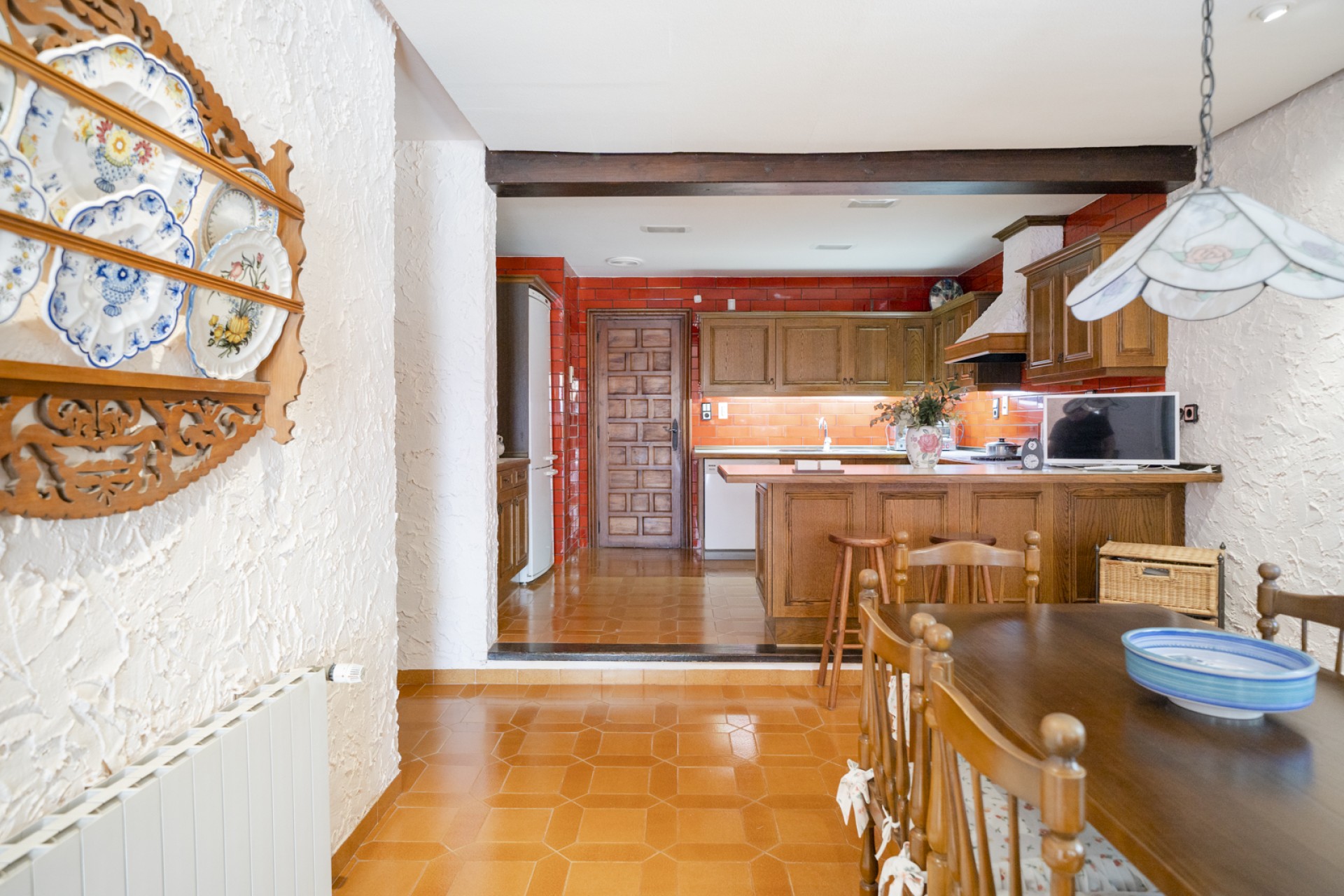 Og når det gjelder fasiliteter, har den en kjele med en ekstern tank, som gir varme til alle varmtvannsradiatorene som er distribuert over hele rommene, som sammen med de to peisene (kjøkken og stue) og installasjonen av kalde klimaanlegg. -calor, oppretthold den ideelle temperaturen inne i huset gjennom året. For ideelt vedlikehold av hagene og frukthagen, har eiendommen en nedgravd vanningsdamme med en elektrisk pumpe for vannuttak, samt et automatisert spray-irrigasjonsnettverk.
