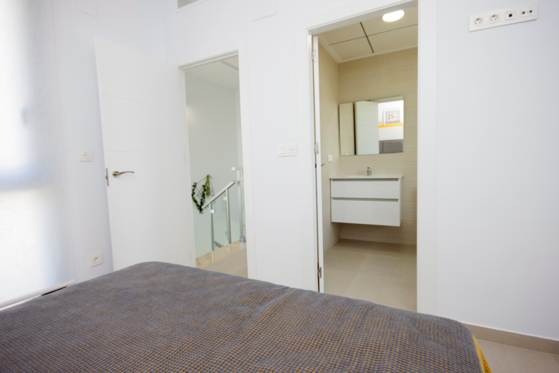 Hoveddelen av huset ligger i første etasje og er tilgjengelig via en stor terrasse i tillegg til hovedinngangen. Her finner du stue / spisestue og et moderne kjøkken med åpen planløsning. På høyre side av stuen finner du et dobbelt soverom og et bad. I første etasje er det to bad og to store soverom, begge på suiten. Du vil også finne en stor terrasse i samme etasje, og den er tilgjengelig gjennom master-rommet.