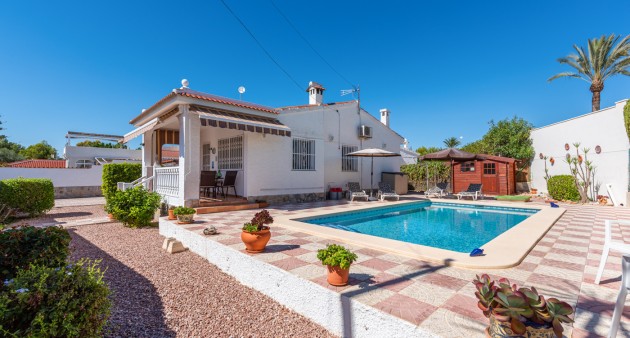 Hovedinngangen til villaen er fra den overbygde sørvendte terrassen, hvor du kan nyte soloppgangen og morgenkaffen. Du kommer inn i en fin stue med sofagruppe, spisestuemøbler samt også plass til et kontorhjørne. Videre er det et kjøkken med utgang til bakhagen. I hoveddelen av huset er det to soverom og ett bad. Via hagen kommer du inn til hybelen med egen inngang. Hybelen har en dobbeltseng, et bad samt et lite kjøkken. Perfekt bruk for tenåringer og eller gjester som er på besøk. Dette er et perfekt feriehjem, samt også hjem for fastboende. Eiendommen har naturgass koblet fra gaten, og huset har sentralvarme, air condition og takvifte. Eiendommen ligger nær fasiliteter som butikker, barer og restauranter, og hovedgaten i Ciudad Quesada er bare 10 min gange unna.