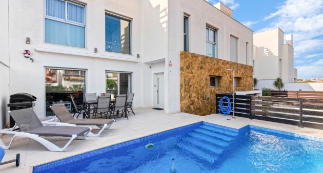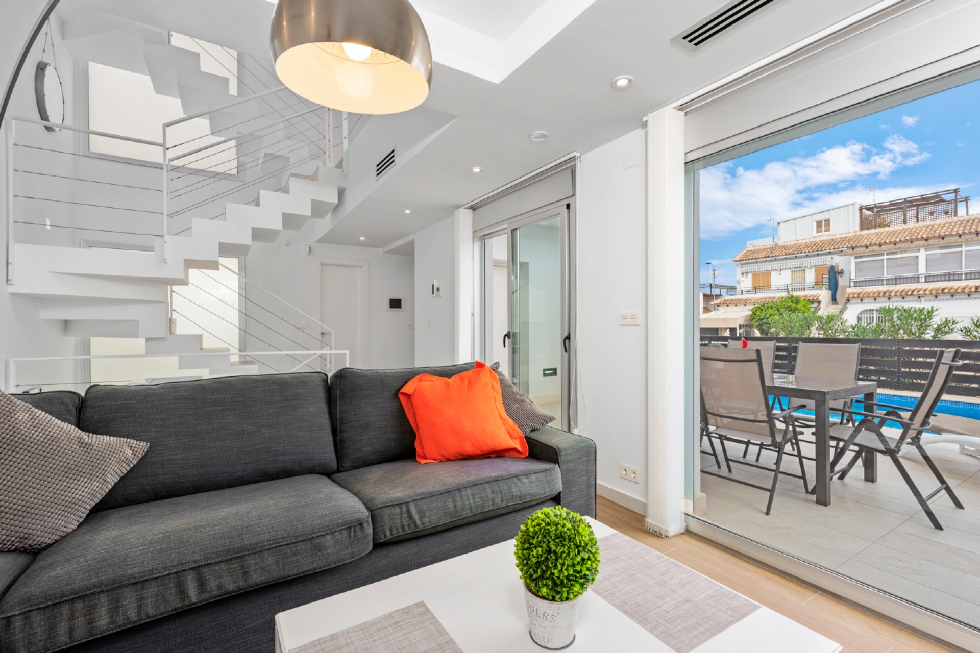 Villaen er utstyrt med klimaanlegg, markiser og alarmsystem.
