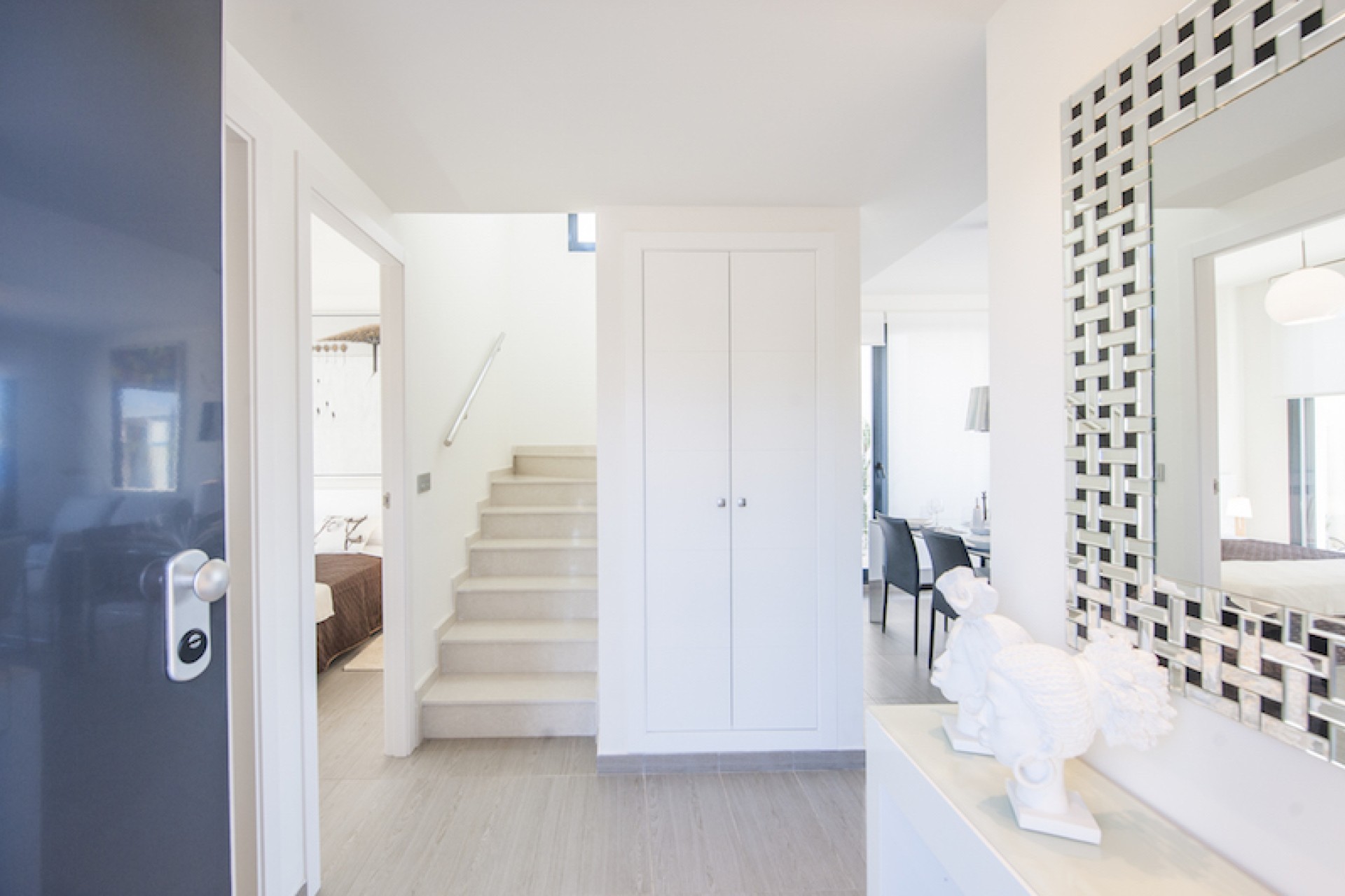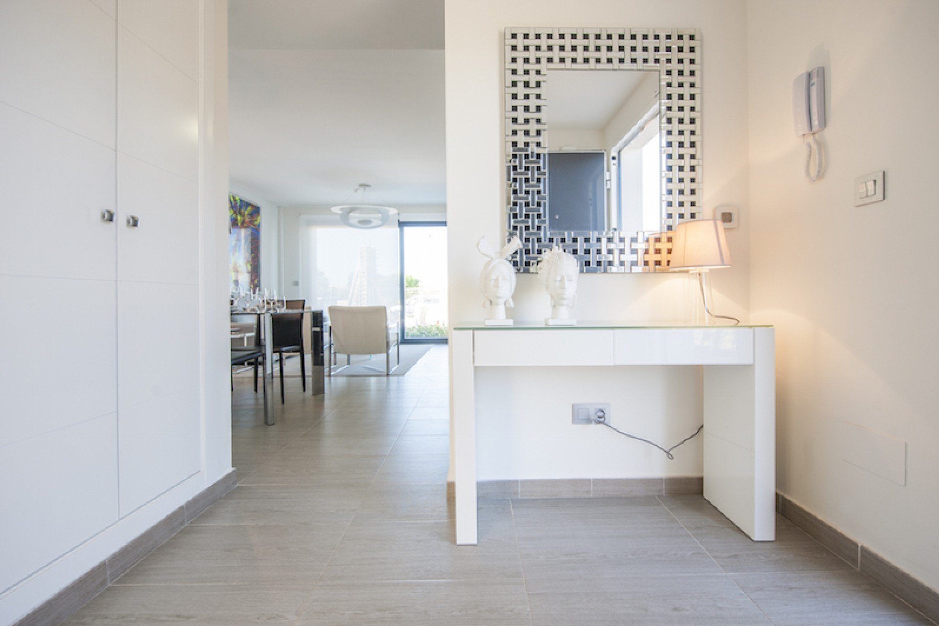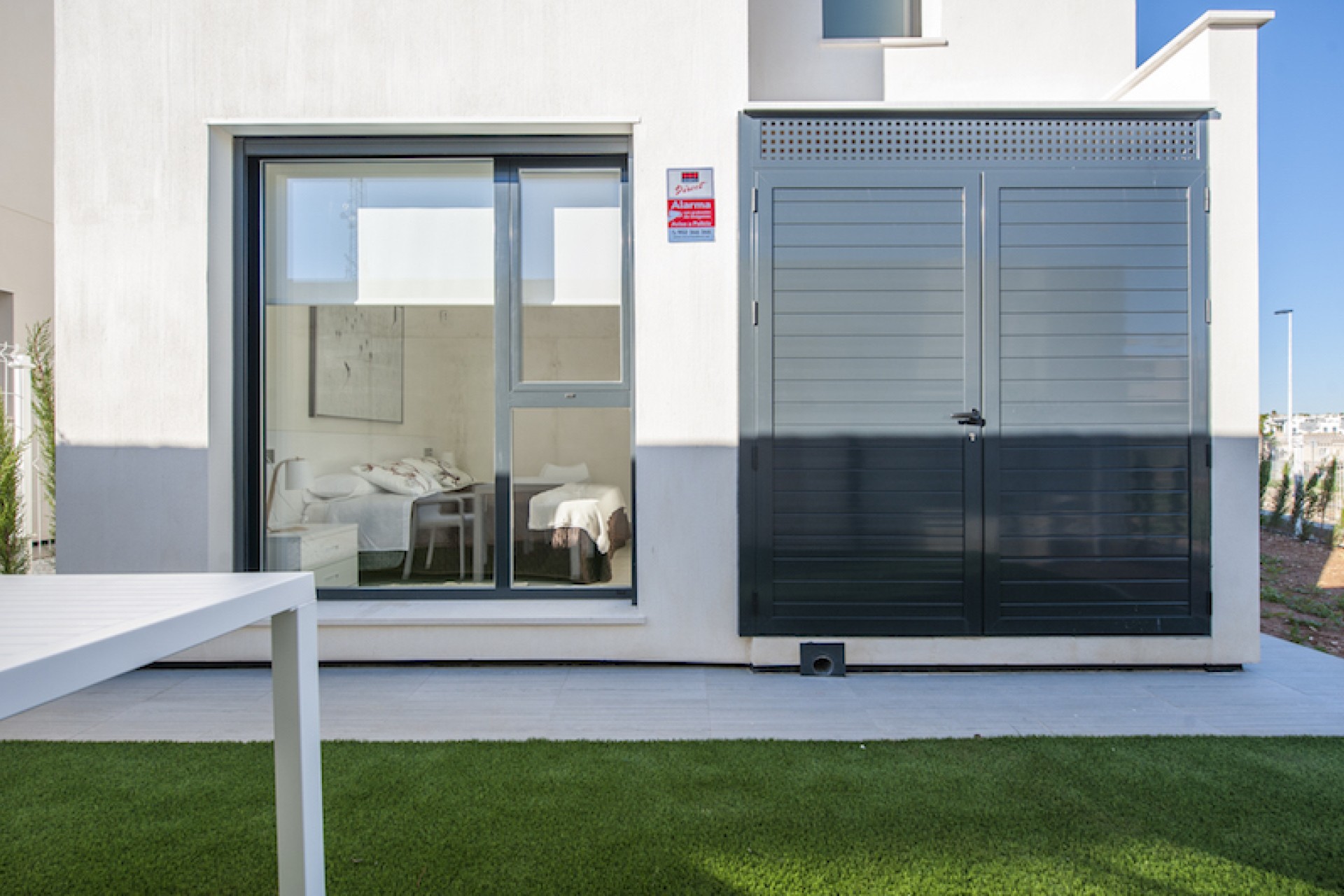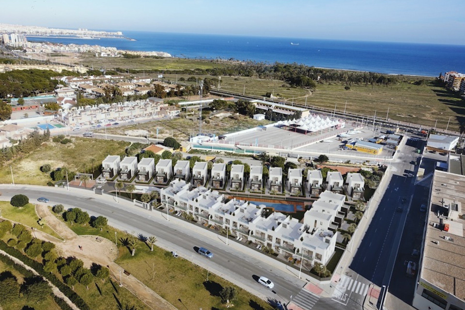 Disse moderne villaene blir nå bygget i et koselig boligkompleks på Punta Prima, kun noen få minutter fra sjøen. Dette flotte og moderne boligkomplekset består av både leiligheter og eneboliger. Her vil det være en leilighetsblokk med 16 leiligheter over 2 plan, og til sammen 17 eneboliger.