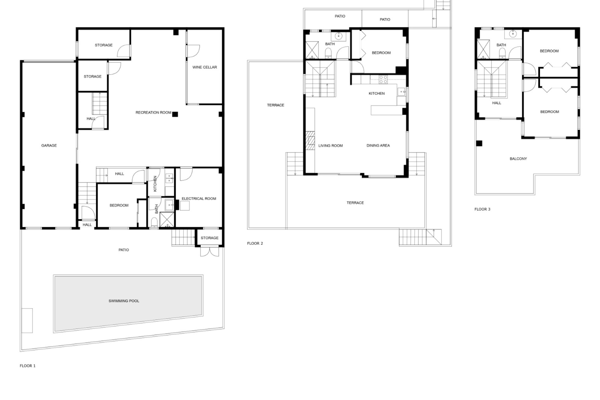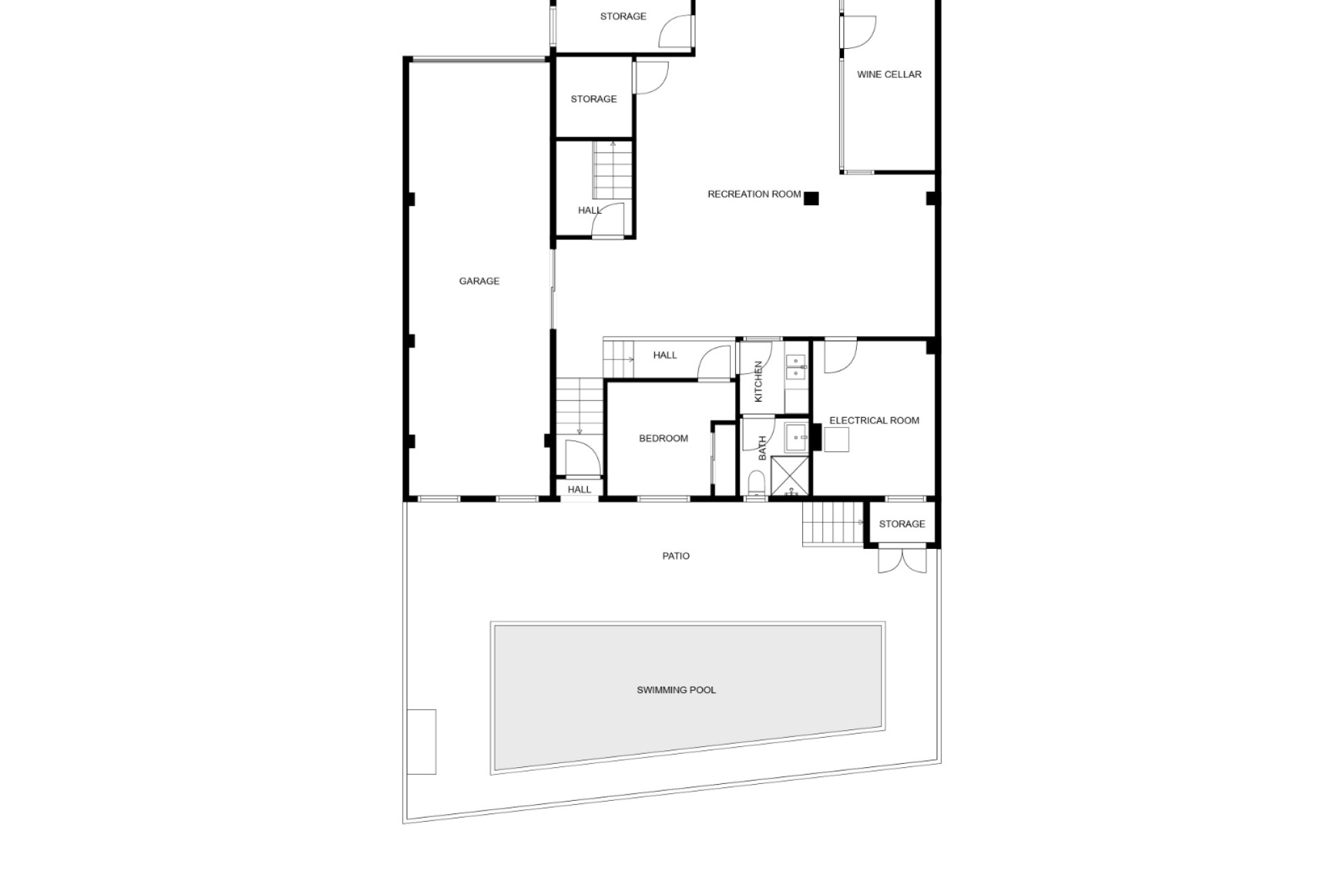 Boligen er fordelt over tre etasjer. Kjelleren har en dobbel privat garasje med direkte inngang til huset, et stort oppholdsrom som passer perfekt som hjemmekino eller spillrom, en vinkjeller, et ekstra soverom, et komplett bad, teknisk rom med oljetank og flere oppbevaringsrom. Etasjen har direkte utgang til hagen, med privat basseng, kunstgress og stor uteplass – ideell for å nyte det middelhavske klimaet.