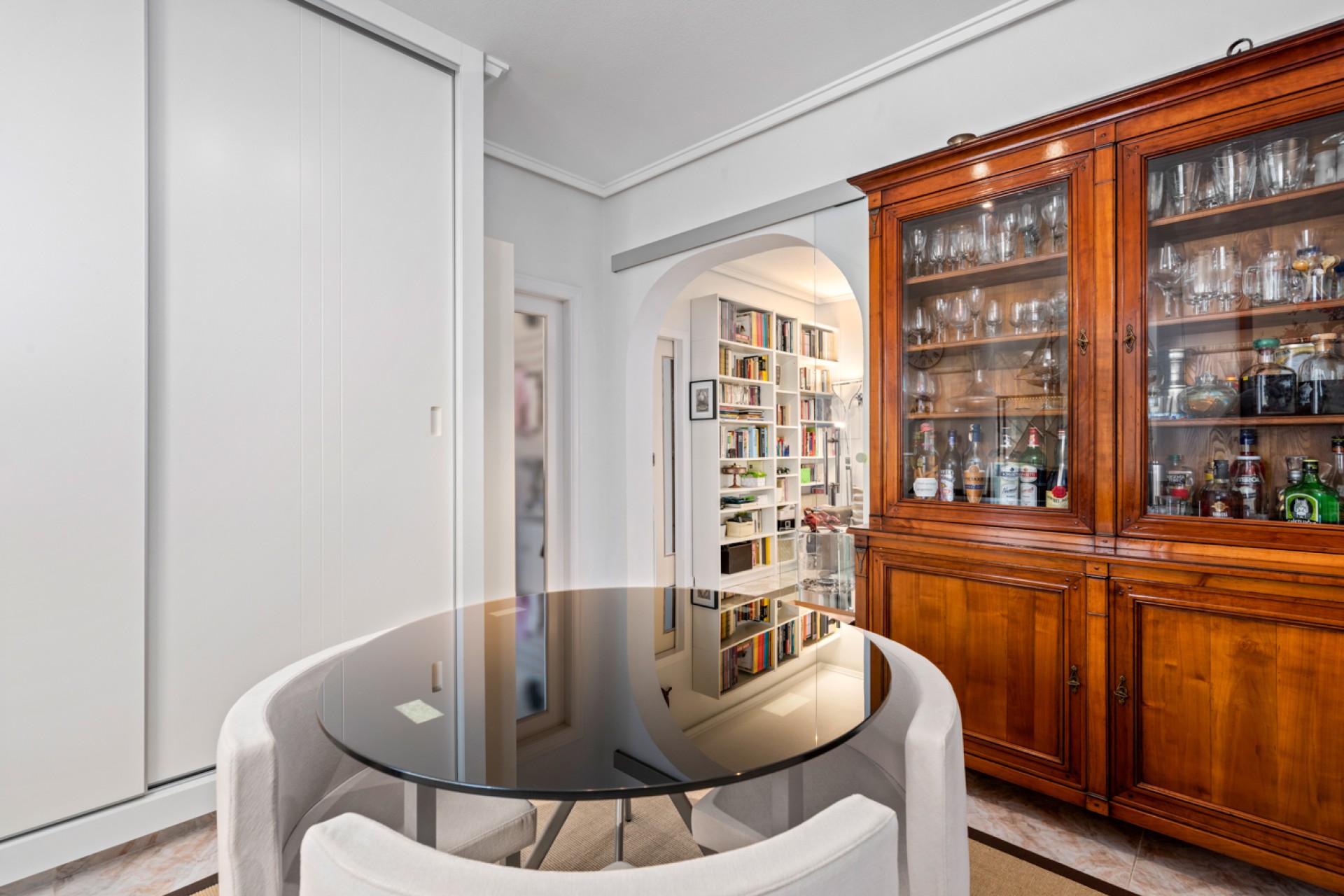 Willa ma powierzchnię mieszkalną 150 m2. Tutaj znajdziesz 3 dwuosobowe sypialnie (jedna jest obecnie wykorzystywana jako jadalnia) i 2 łazienki, z których jedna jest en-suite. Ponadto składa się z salonu, kuchni z pomieszczeniem gospodarczym oraz przeszklonego tarasu pełniącego funkcję dodatkowej powierzchni mieszkalnej. Z przeszklonego tarasu masz bezpośredni dostęp do strefy basenowej, az pomieszczenia gospodarczego masz bezpośredni dostęp do tylnego ogrodu domu.