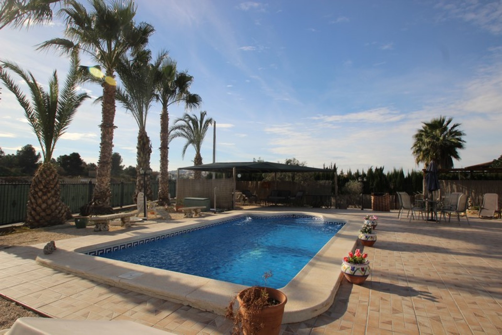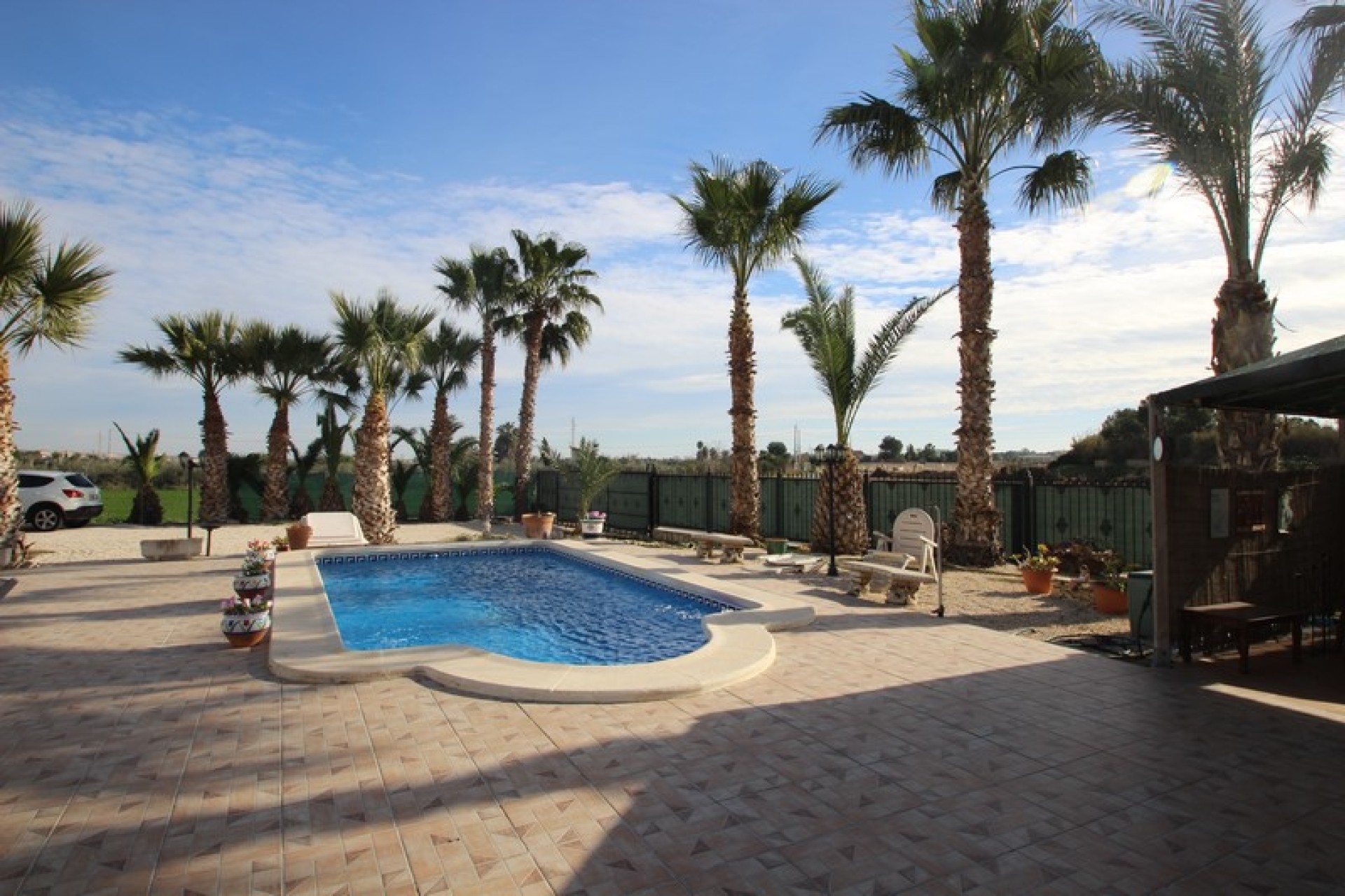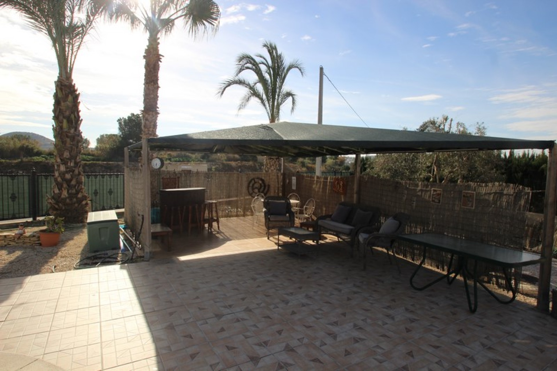 The villa is set on a 1140sqm plot so here one has plenty of outdoor space. There is a swimming pool of 8x4m on the plot, as well as lounge areas and a carport. The garden, with plants and palm trees, is easy to maintain as some parts is tiled.
