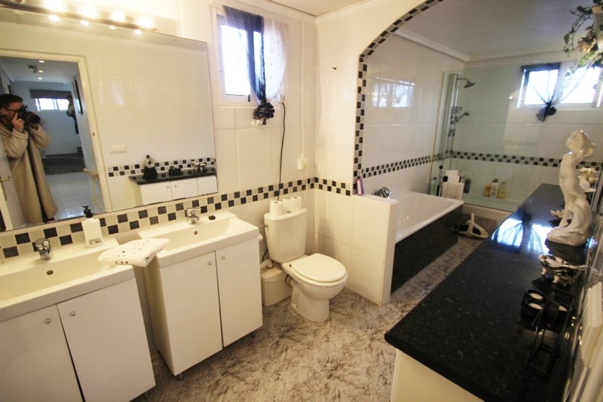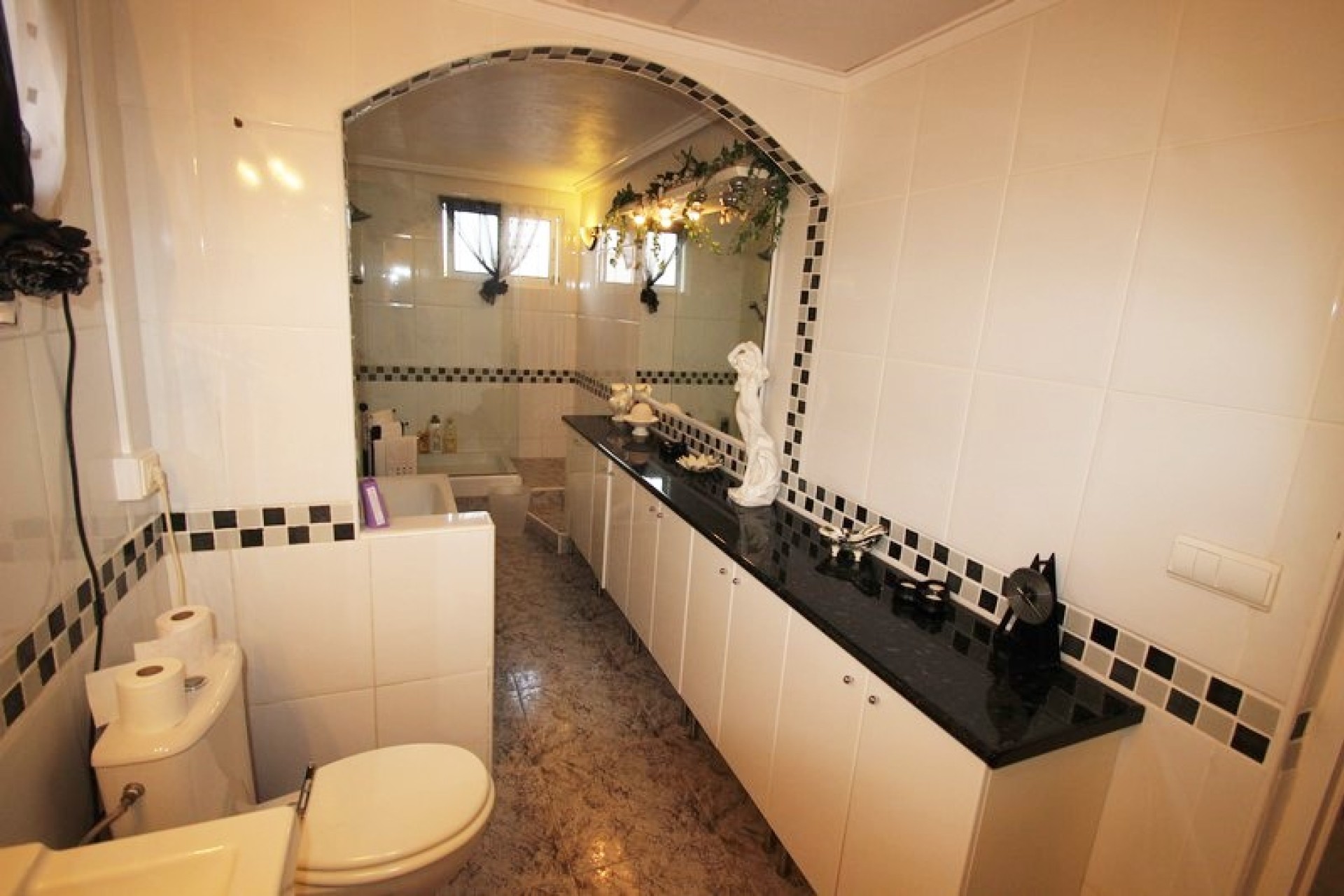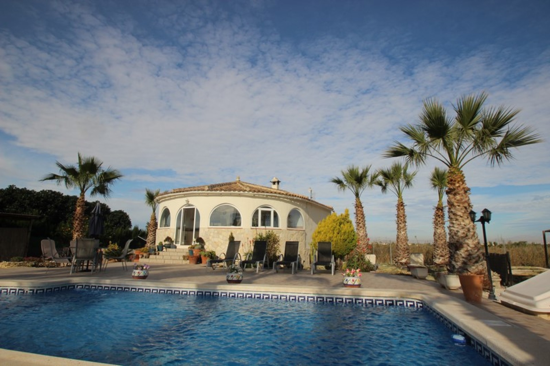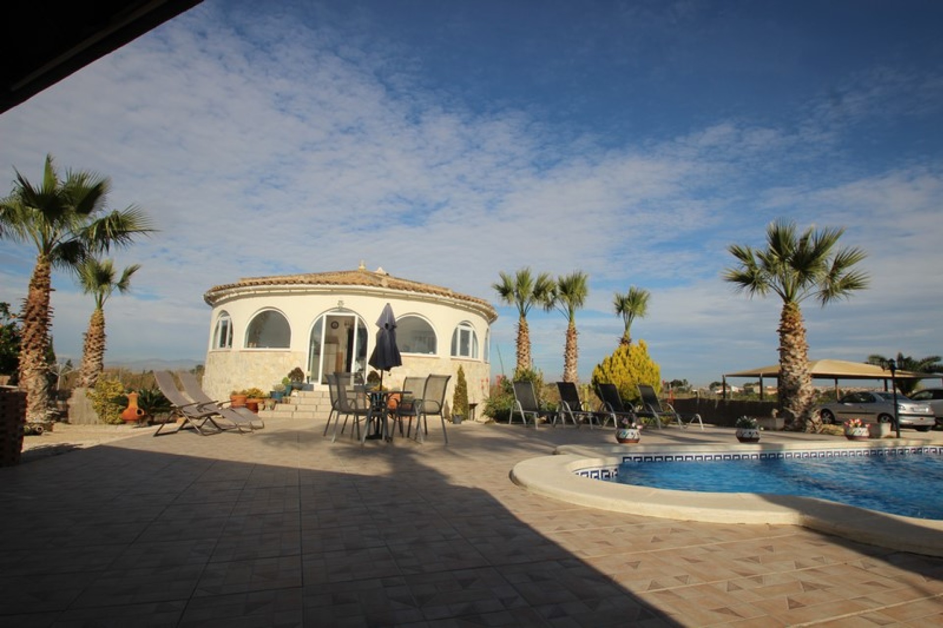 The villa is set on a 1140sqm plot so here one has plenty of outdoor space. There is a swimming pool of 8x4m on the plot, as well as lounge areas and a carport. The garden, with plants and palm trees, is easy to maintain as some parts is tiled.