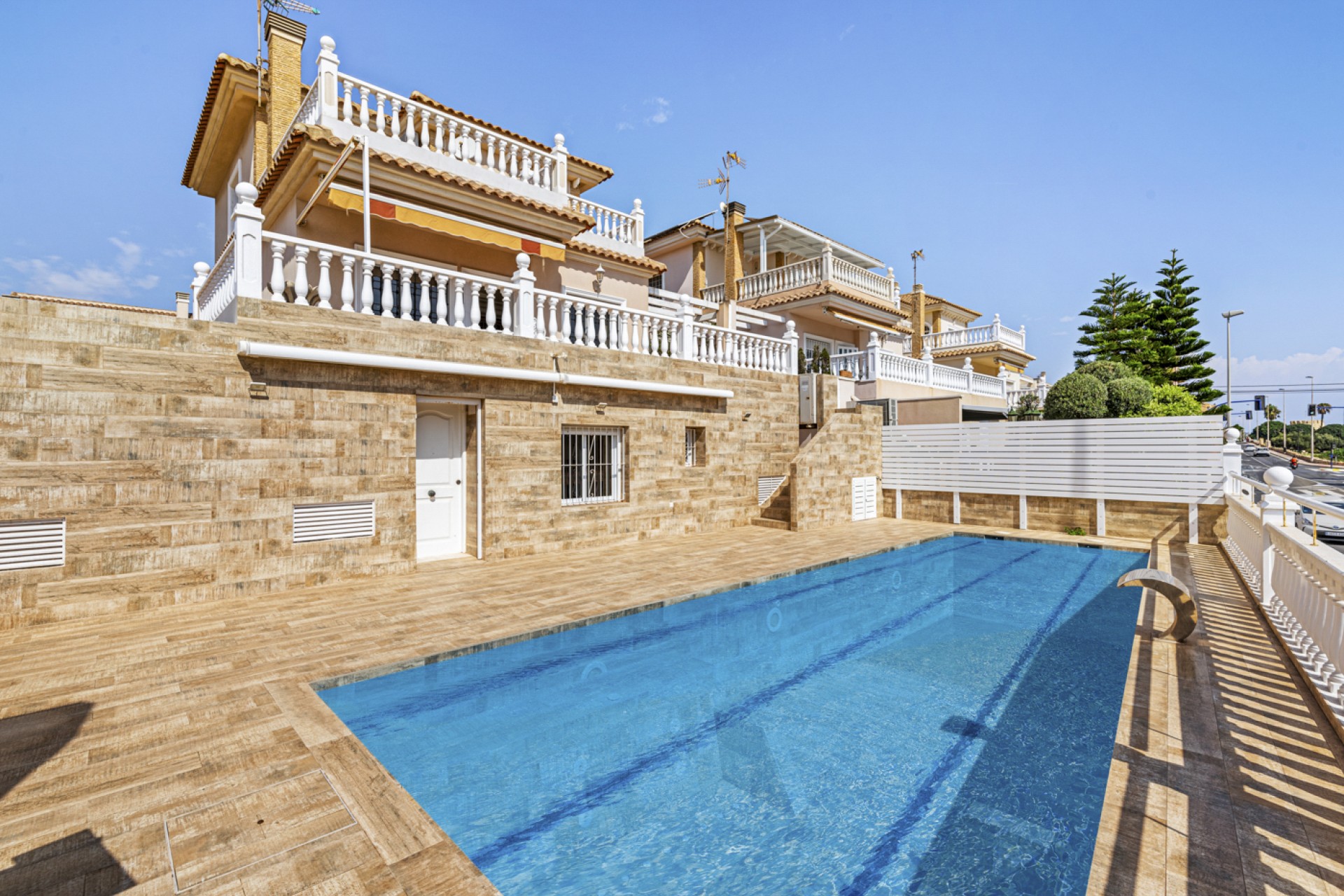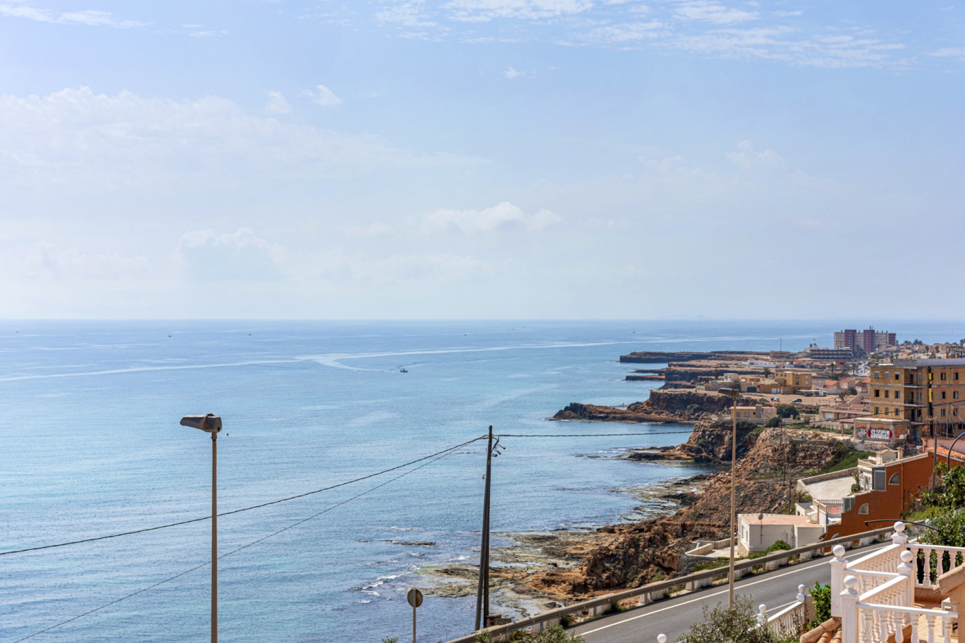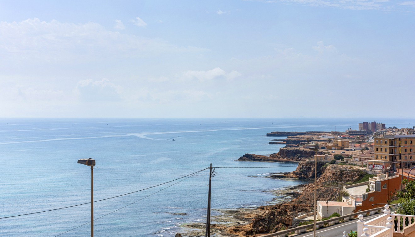 The house is set on a plot right next to the sea, with wonderful views of the "calas de Torrevieja" and walking distance to Playa de Los Locos. You have uninterrupted views over the sea and the coastal line of Torrevieja.