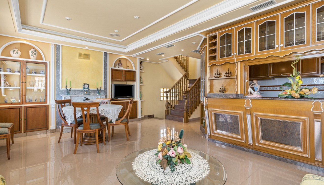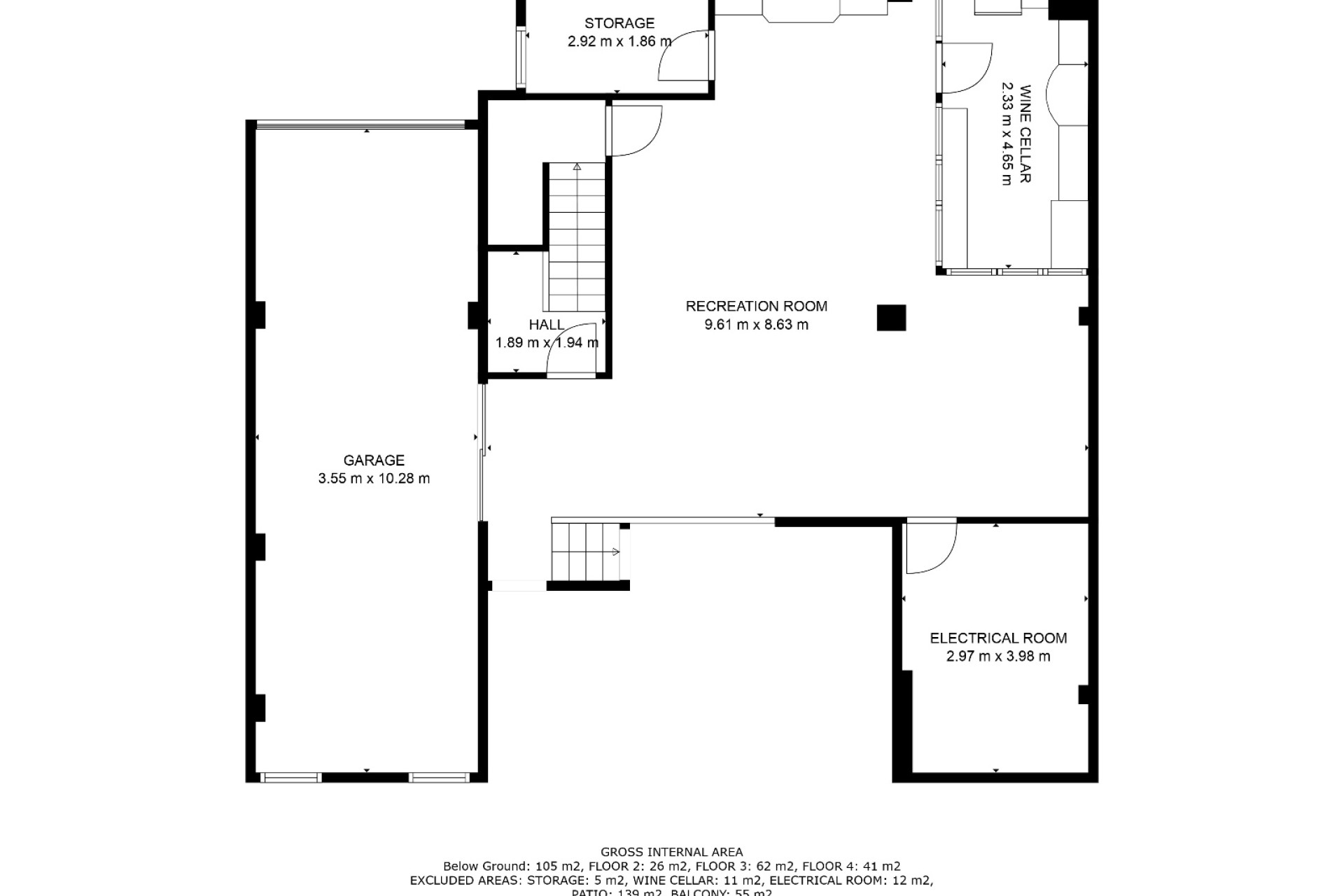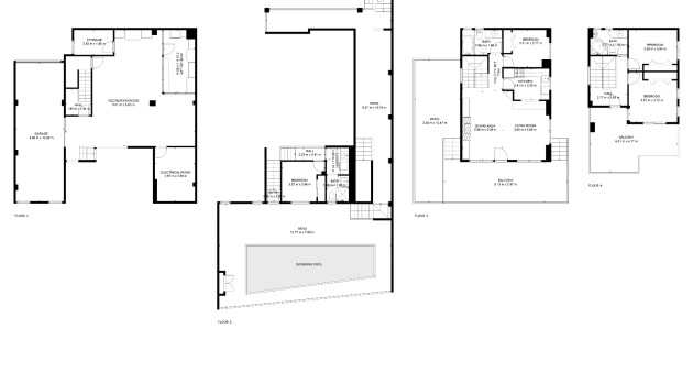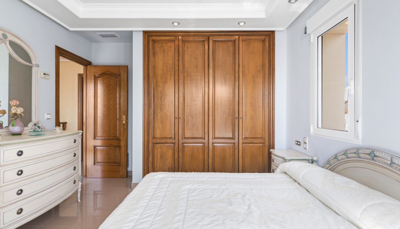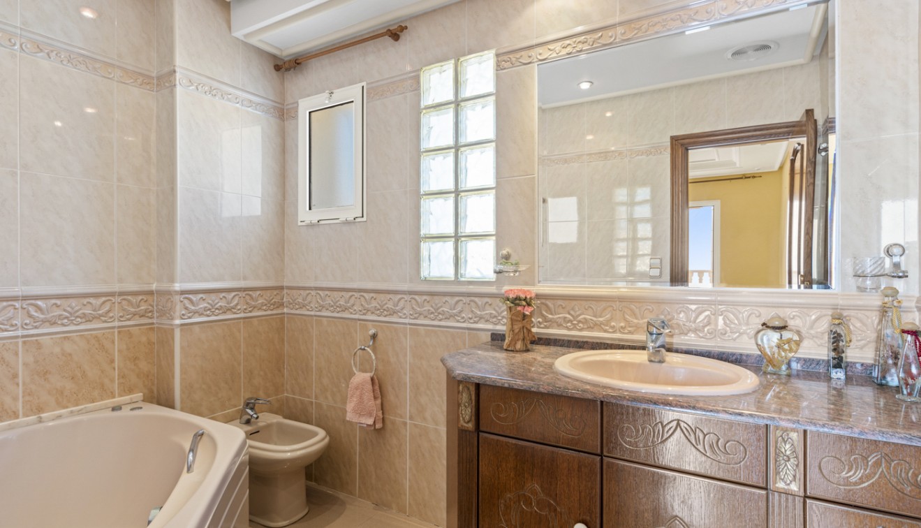 The house is set one 4 floors and has a total living area of 117,35 m2. On the bottom floor we can find a recreation room, a spacious garage, a wine cellar and a utility room. On the first floor there is a side patio and a wonderful front patio with a pool and sea views. We can also find a laundry room, a bedroom and a bathroom. On the main floor, we find a dining/living area with access to a 27sqm balcony with sea views. Also, there is a kitchen, a bathroom and a room with built-in wardrobes. On the top floor there are two rooms, a bathroom that features a massage bathtub and a balcony, accesible from one of the rooms.