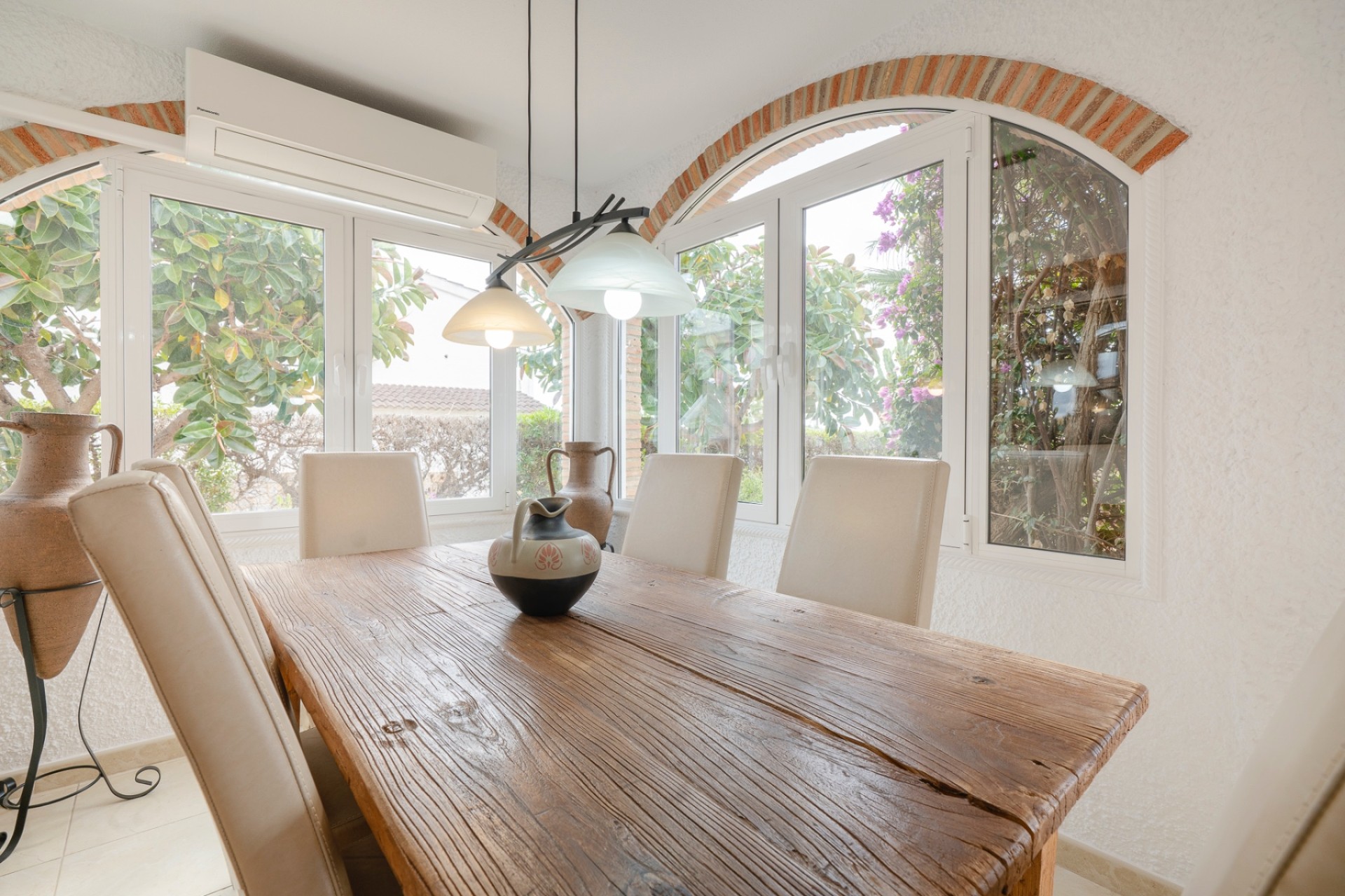 Additionally, the property is equipped with solar panels that provide enough energy to power the entire house, ensuring energy efficiency and respect for the environment. It also has a small solarium on one side of the house.