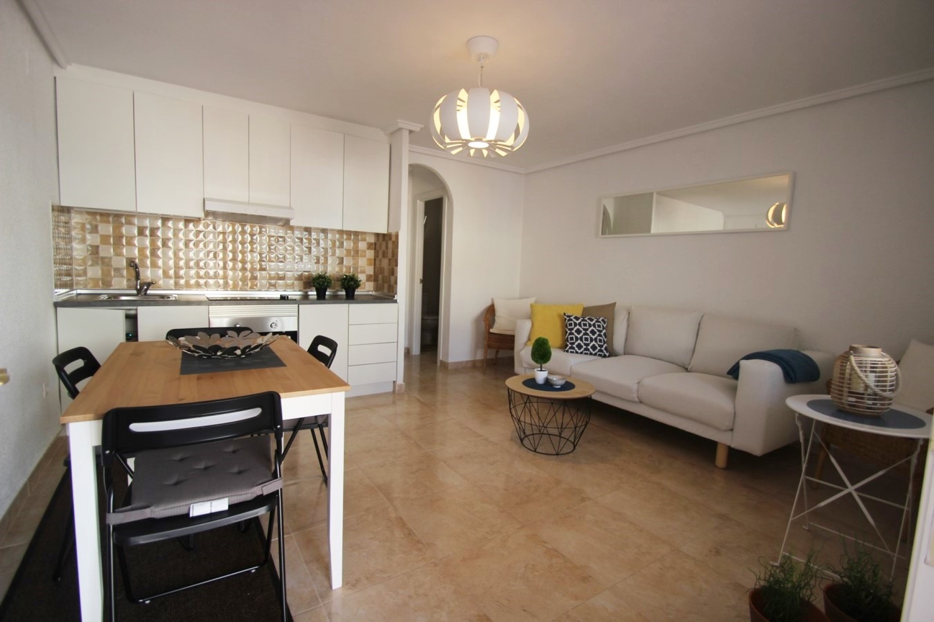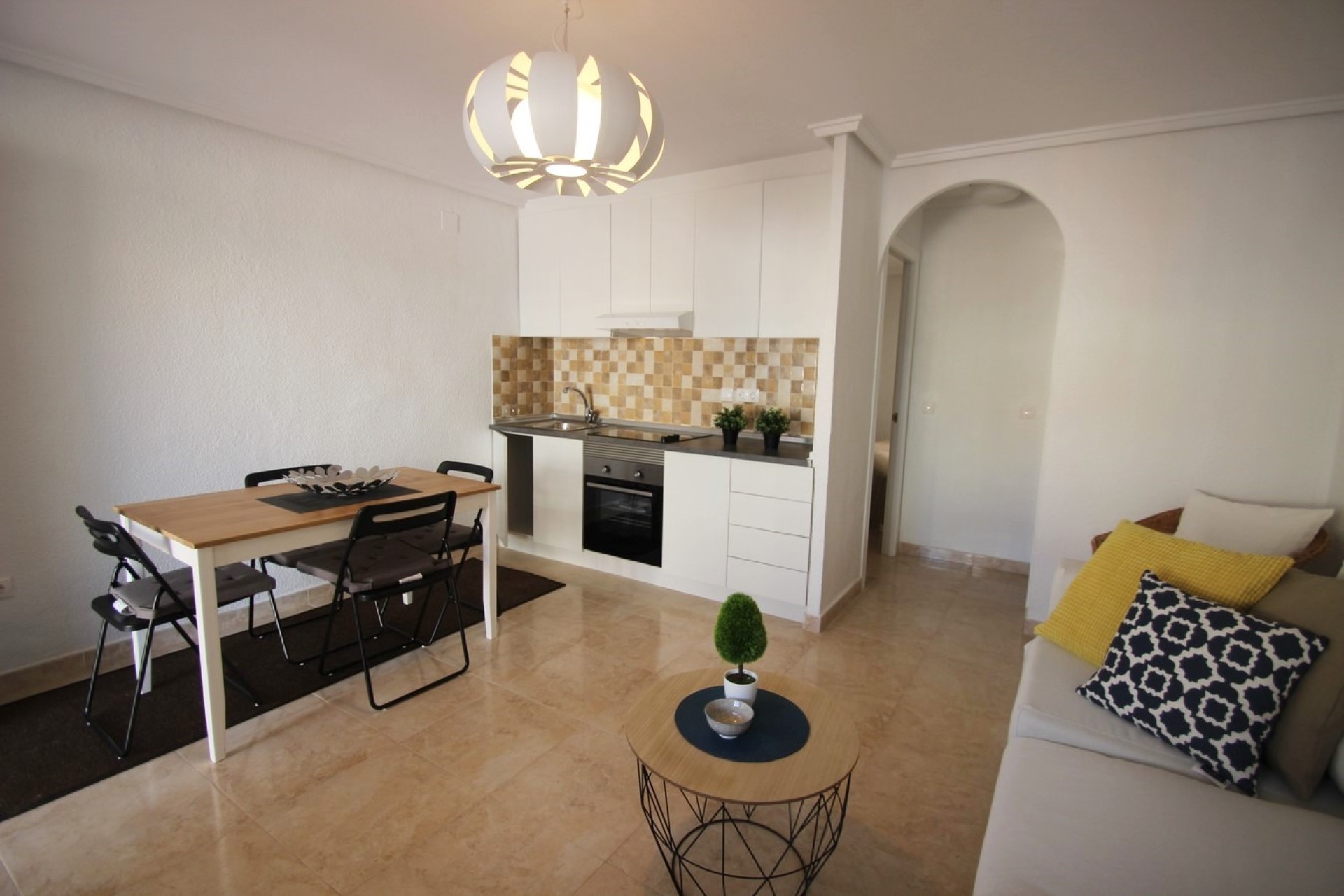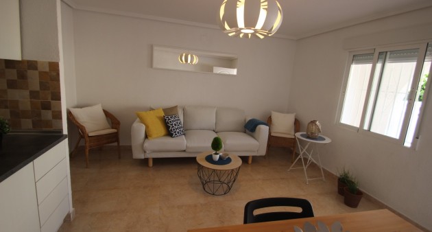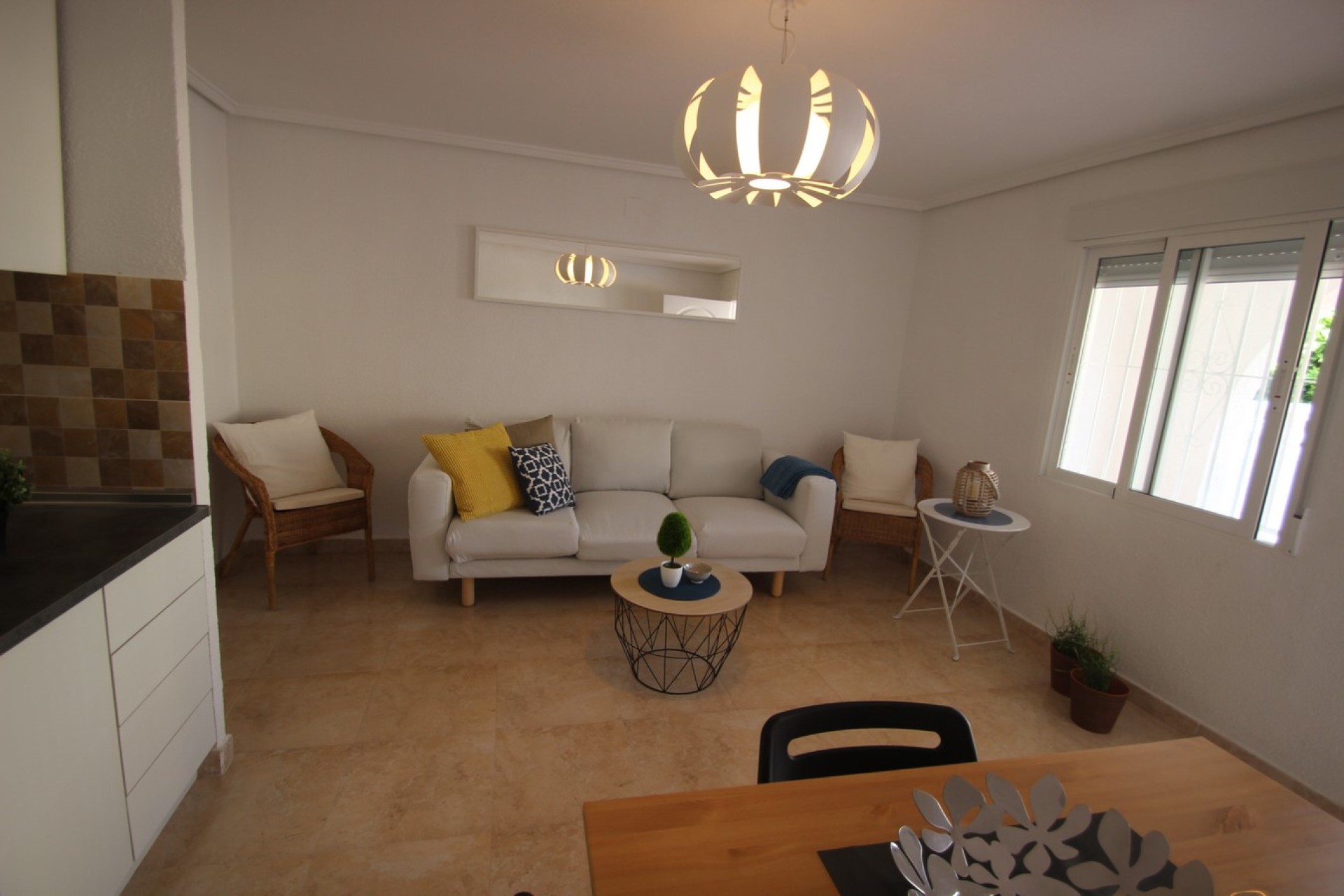 Newly renovated bungalow situated in San Luis, Torrevieja. The bungalow has a living area of 40 sqm. and consits of one double bedroom, a storage room, a bathroom, an open plan kitchen and living/dining room. It is possible to build a second floor.