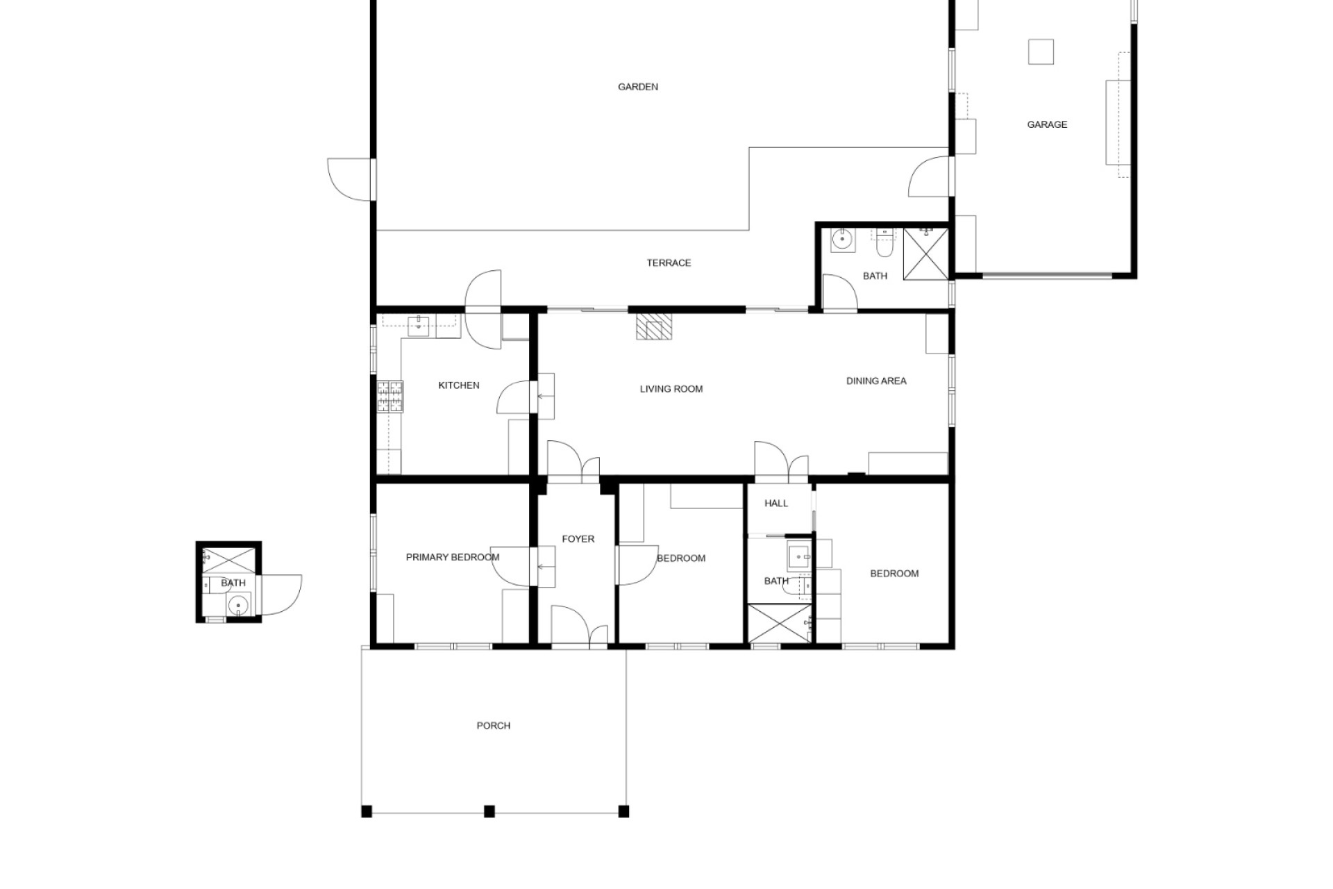 Surrounding the entire property is a generous exterior space with multiple potential uses, whether as a garden, vegetable patch, play area, or simply open space to enjoy the natural setting
