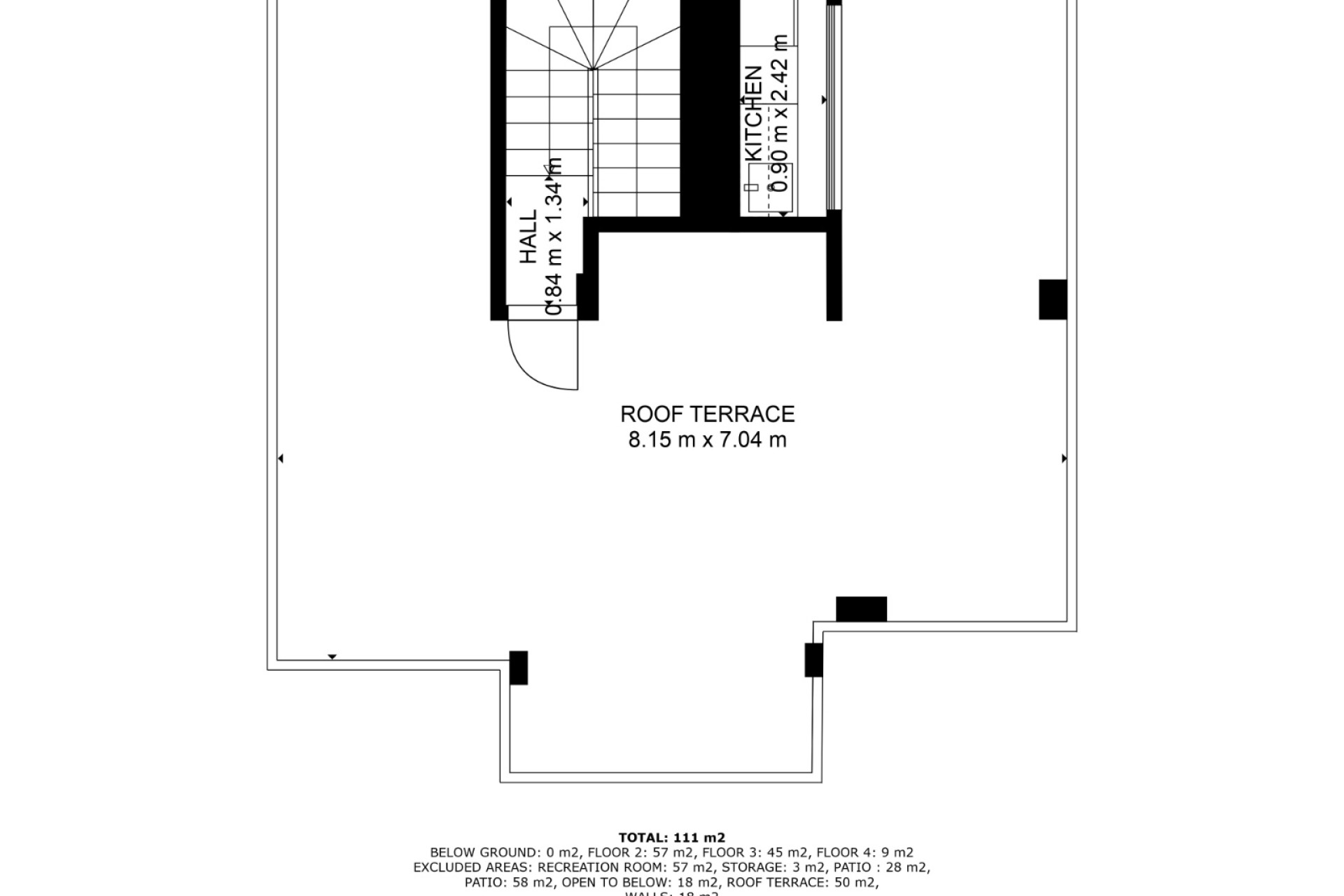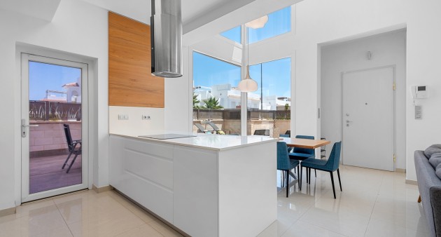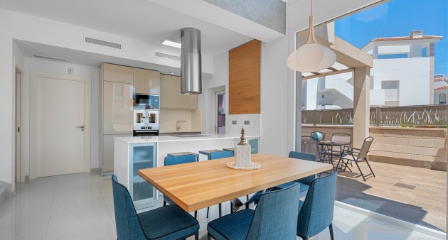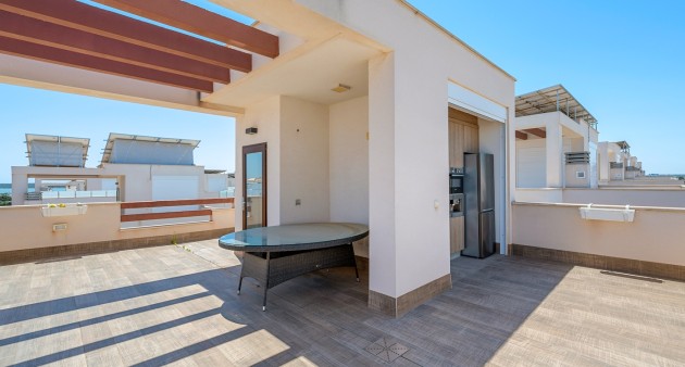 The private rooftop terrace includes a fully installed and functional outdoor kitchen with direct access from inside the house, making it a comfortable area for year-round use.