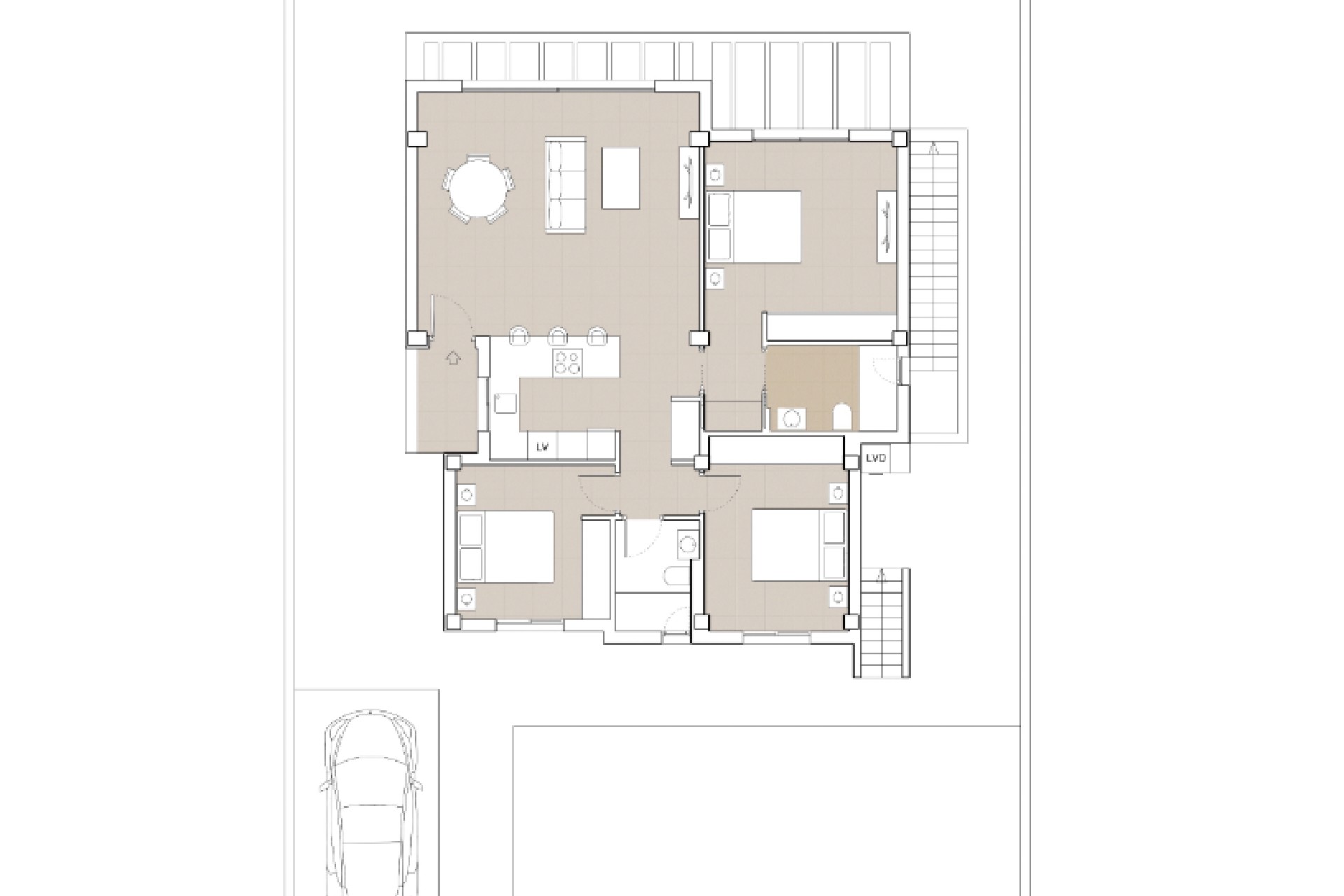 Elegant design and high-end finishes. Villa built on a private 432 m² plot on one level with the option to add a basement for additional space. Includes: